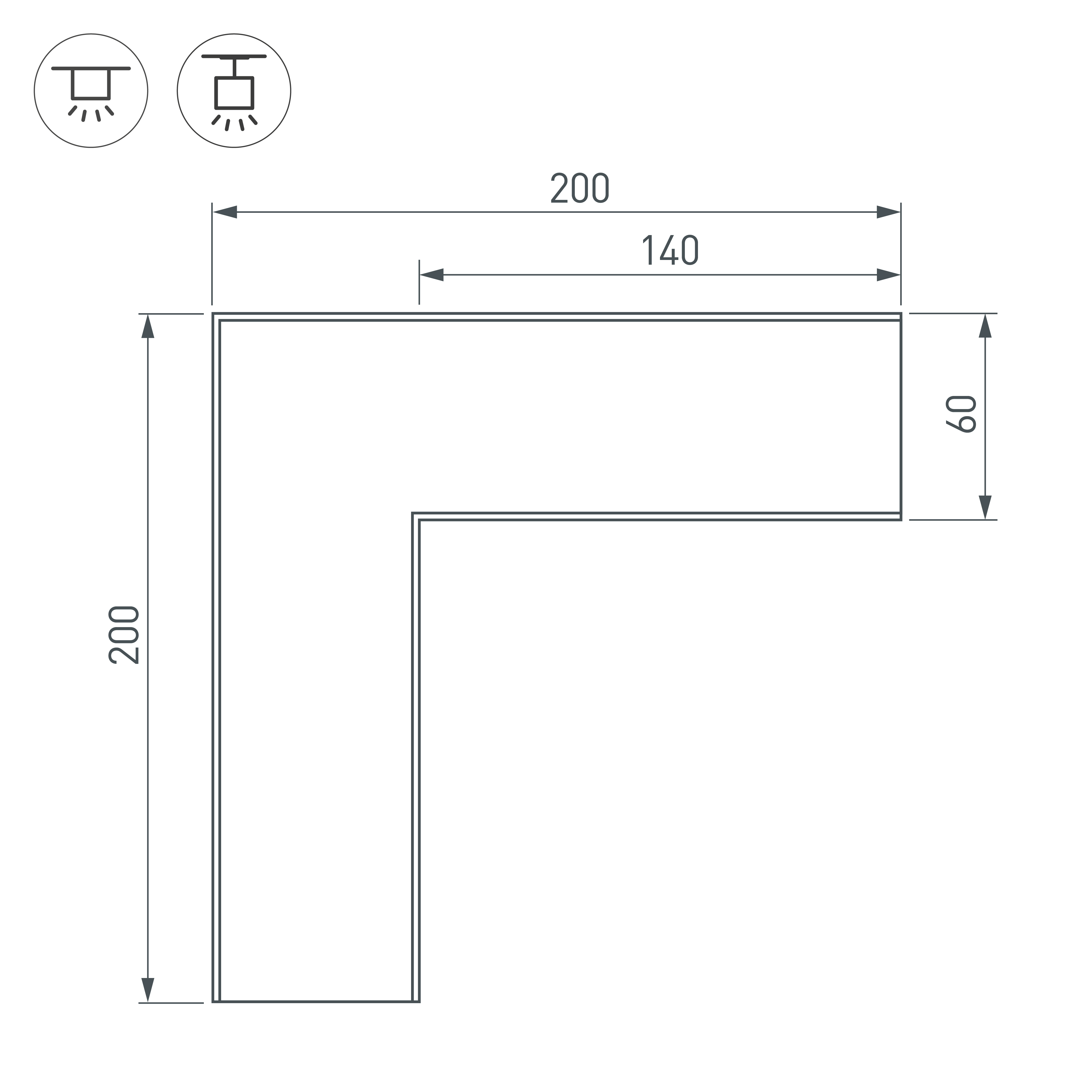 Прямой угол в сборе для соединения двух профилей SL-LINE-6070 под прямым углом 90° в одной плоскости в комплекте с матовым экраном и соединителями. Экран образует линию на плоскости. Применятся при изготовлении светильников сложной геометрии.