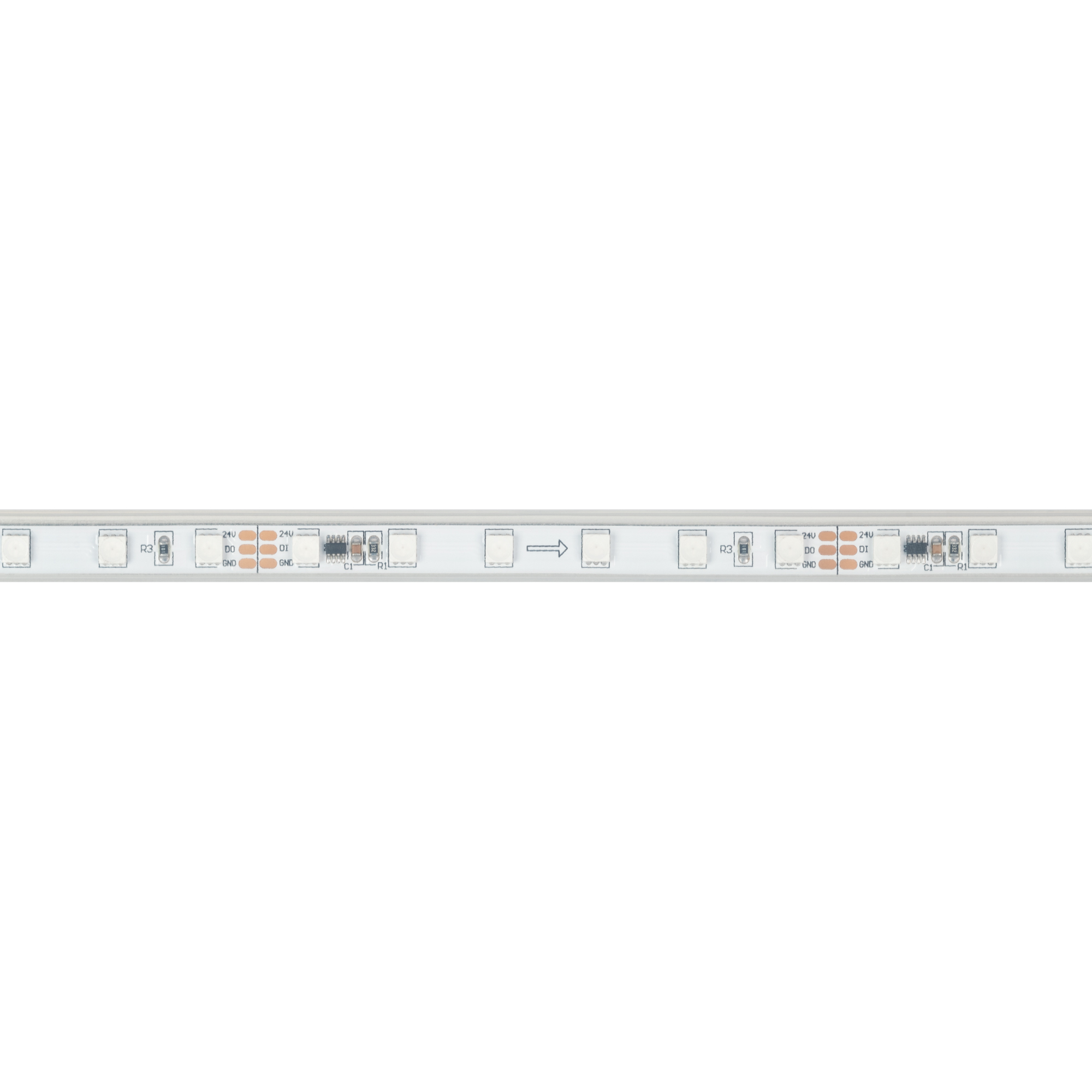 Герметичная лента SPI «Бегущий огонь» с микросхемой 16703(MT1803), IP66. Управление через внешний контроллер (совместимый c микросхемами TM1812, UCS1903, GS8206, WS2812–2815) по стандартному протоколу SPI. Используется для воспроизведения многоцветных световых эффектов различной сложности: от простейших эффектов до воспроизведения динамических изображений на мультимедийных экранах. Применяется для создания рекламных вывесок, оформление витрин, помещений для дискотек, ресторанов, театрализованных шоу.