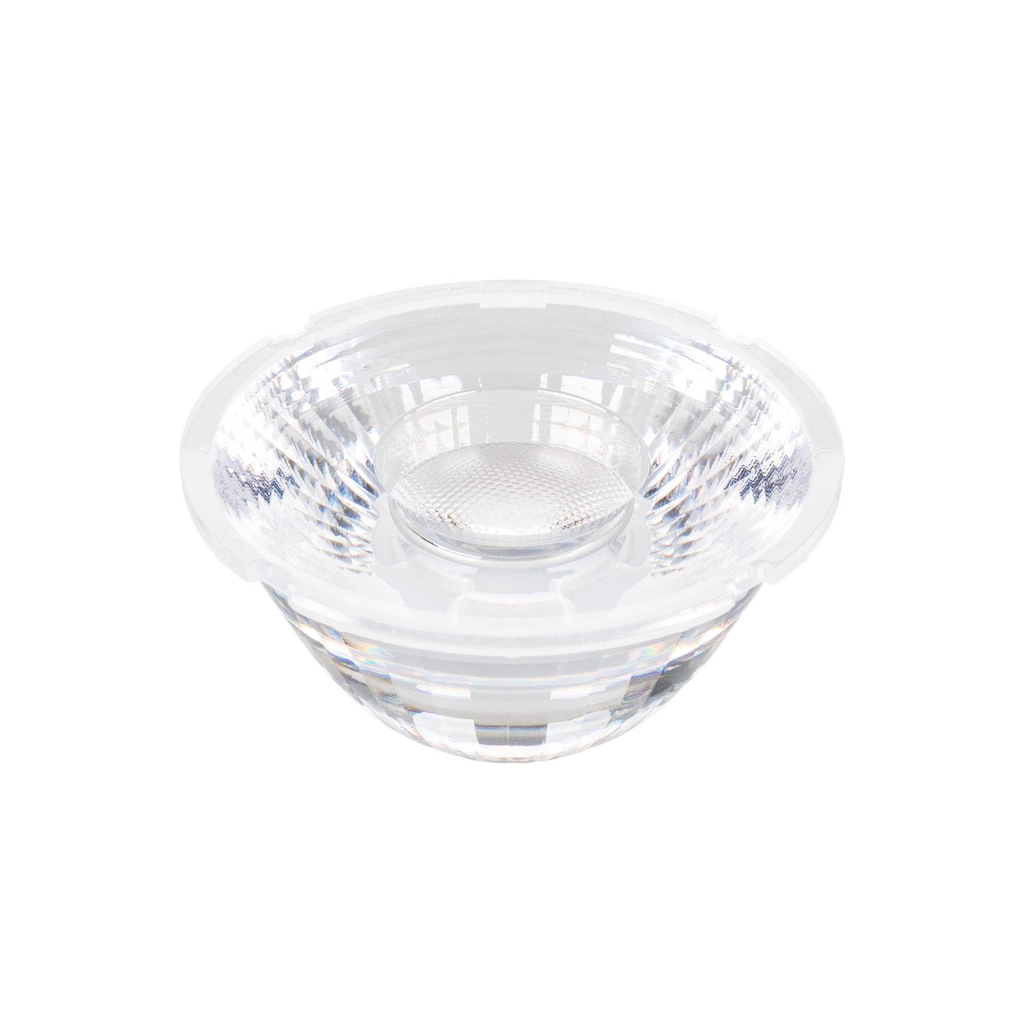Одиночная линза цельная (с несъемным холдером) для мощного светодиода COB. Совместима со светильниками LGD-GERA-2TR-R74-20W/LGD-GERA-4TR-R74-20W. Угол обзора вертикальный 36°, прозрачная микропризма. Материал PMMA. Диаметр 69 мм, высота 29 мм.