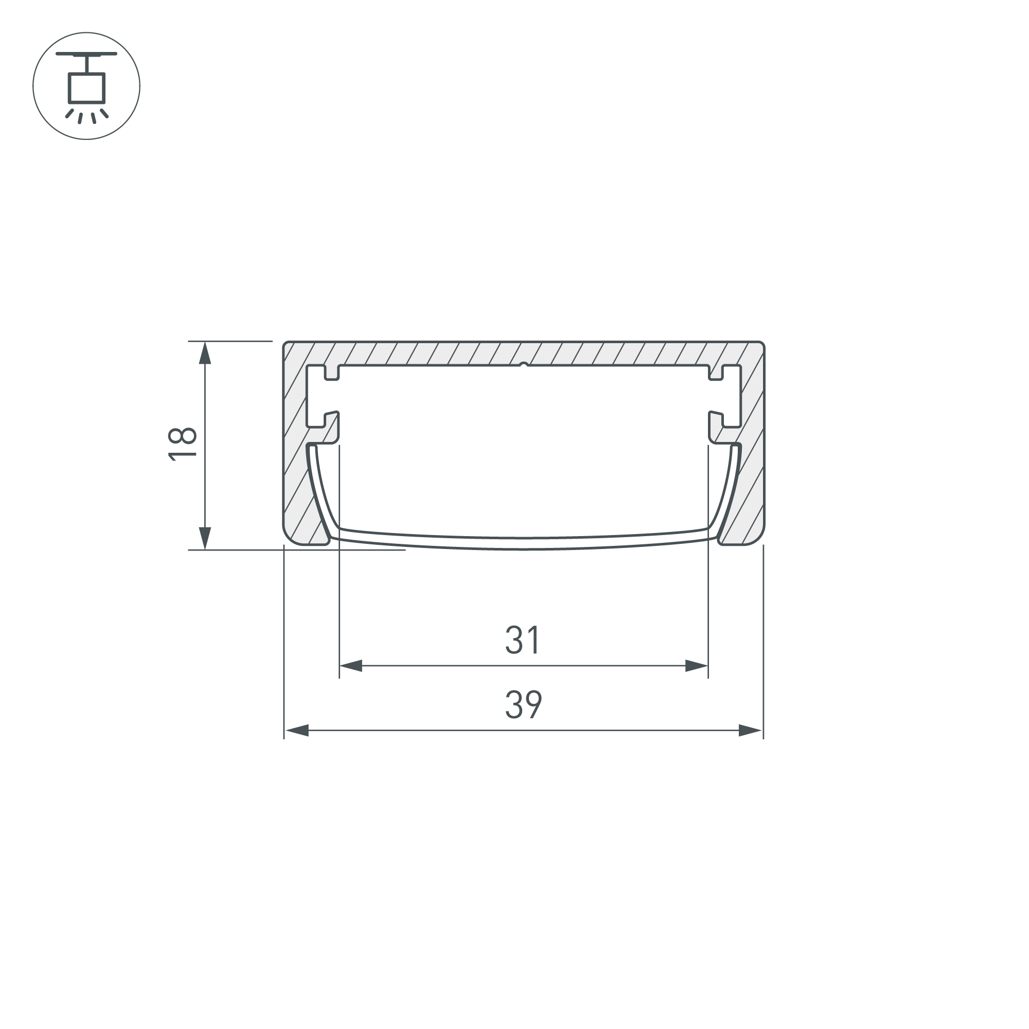 Накладной/подвесной профиль из анодированного алюминия для контурной подсветки элементов интерьера. Габаритные размеры профиля составляют 2000 мм в длину, 39 мм в ширину и 18 мм в высоту. Площадка для установки светодиодных лент позволяет использовать ленту шириной до 31 мм и мощностью до 28 Вт/м. Это обеспечивает гибкость в выборе светодиодных лент и создает потрясающие световые решения.