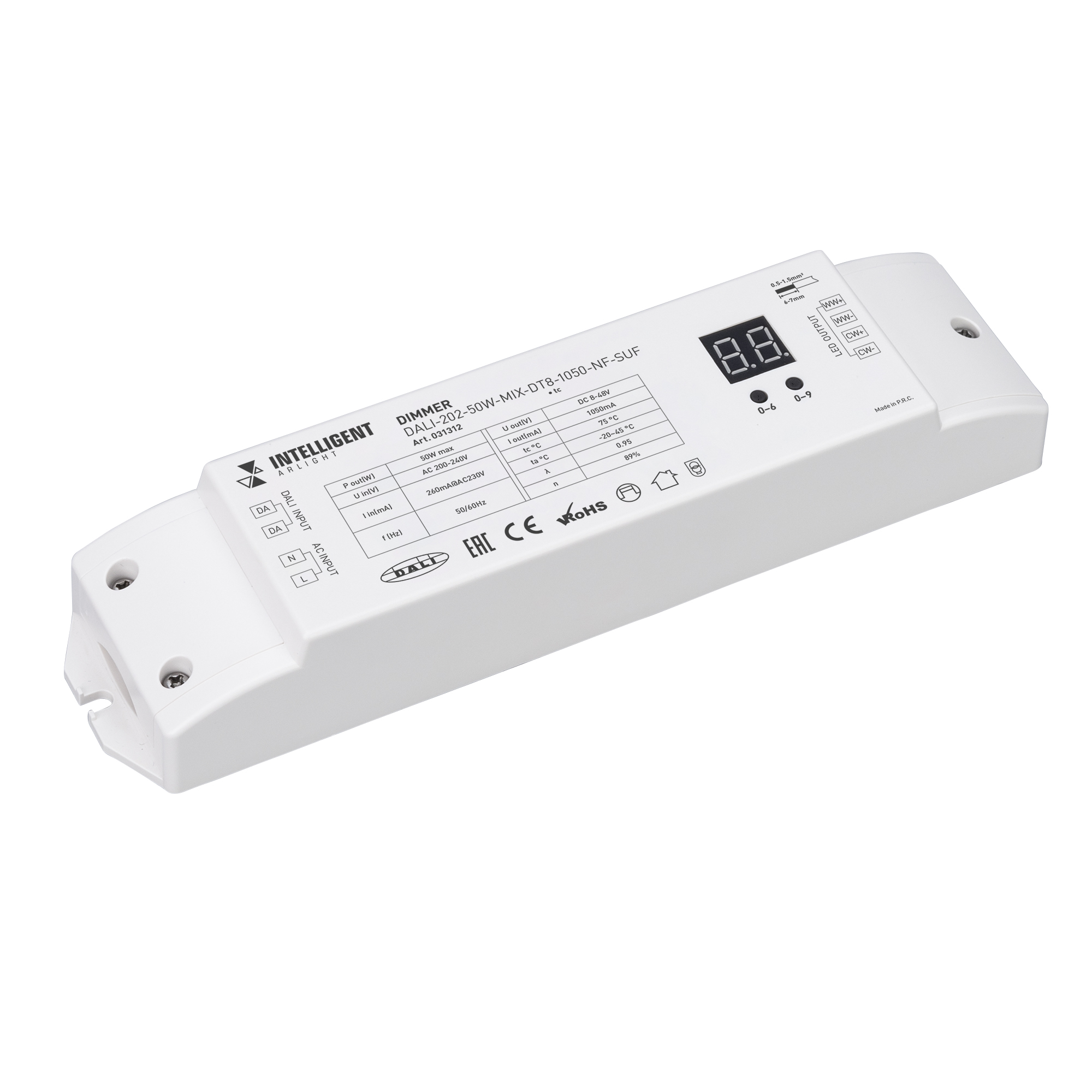 Источник тока с возможностью диммирования и управления цветовой температурой по протоколу DALI - DT8 предназначен для управления светильниками MIX (CCT). Высокая стабильность выходного тока и низкий коэффициент пульсаций обеспечивают свечение без эффекта мерцания. Устройство предназначено для работы внутри помещений, имеет скромные габариты, что позволяет встраивать его в корпус светильника.