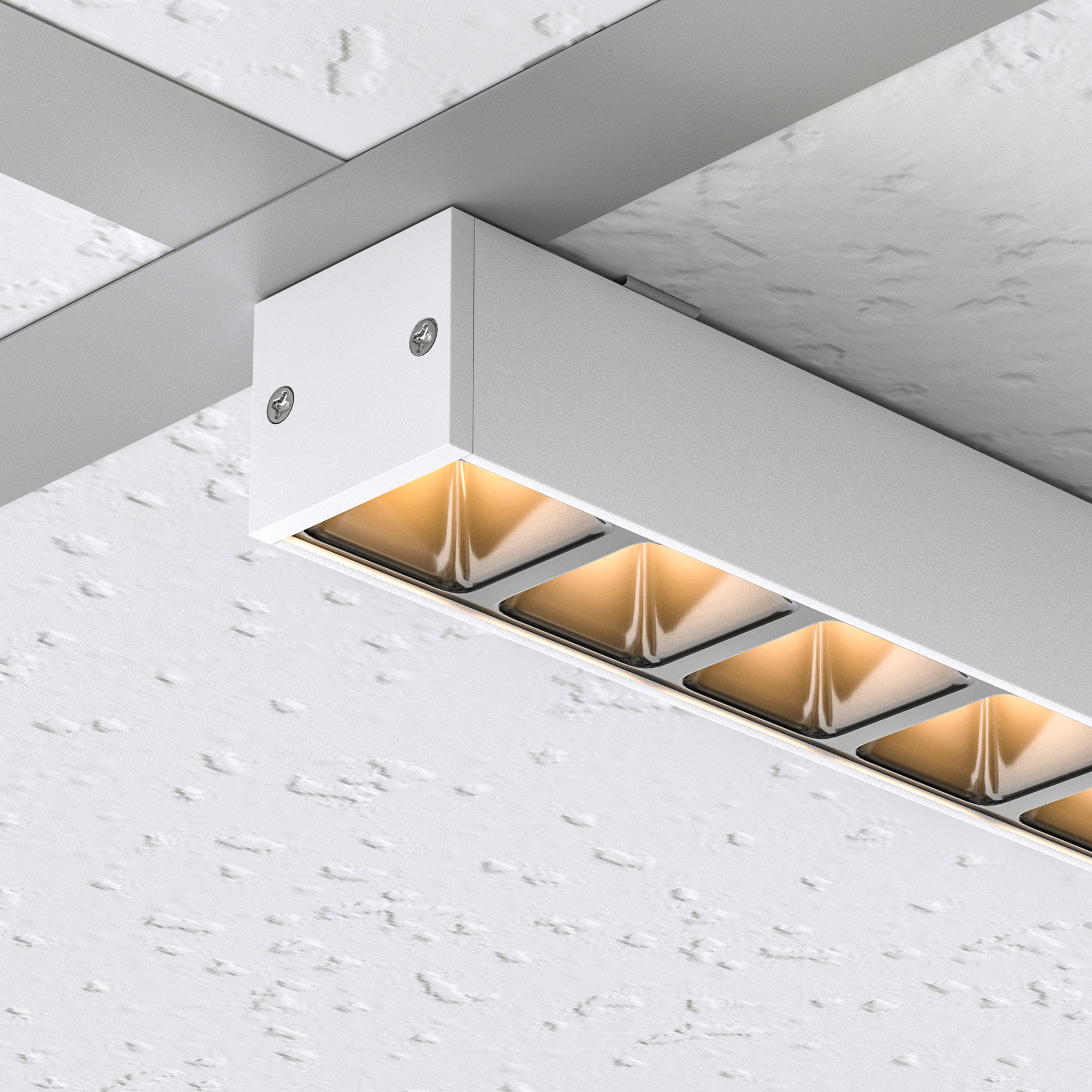 Линейный светодиодный светильник SNAP-STARLINE-LASER-S600-13W Warm3000 (WH-BK, 80 deg, 48V) для направляющих потолка «Армстронг» шириной 15 и 24 мм это удобное и эффективное решение освещения. Поворотное крепление светильника фиксируется на направляющей и совместимо с профилем разной ширины. Лаконичный корпус прямоугольного сечения из алюминия идеально подходит для накладного монтажа с помощью держателя 034271. Мощность светильника 14 Вт, световой поток 1190 лм, световая эффективность 76 лм/Вт, цвет свечения теплый белый (3000 K). Узкий угол 80 градусов позволяет использовать светильник для акцентного освещения. Из светильников можно составлять линейные или геометрические фигуры на потолке, что позволяет воплотить любые идеи светового дизайна. Светильник с напряжением питания 48 В и степенью защиты IP40 подходит для создания комфортного освещения в офисах, магазинах и коммерческих помещениях. Драйвер для подключения поставляется отдельно.