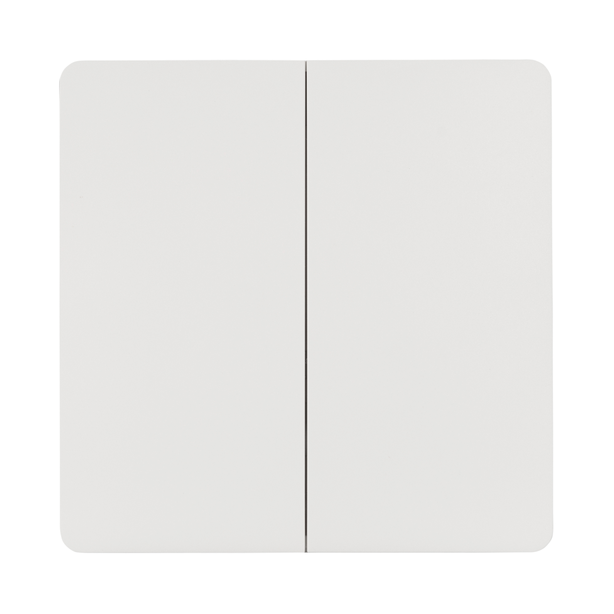 Накладная кнопочная панель белого цвета, изготовленная из пластика. Предназначена для управления одноцветными источниками света (ШИМ) с помощью кнопок. Основные выполняемые функции: включение и выключение света, регулировка яркости. Удобное и точное управление с помощью эргономичных кнопок. Изделие применяется в качестве двухзонного пульта дистанционного управления диммерами и релейными модули серий TUYA-***-WF и TY-***-WF, поддерживающими управление по радиоканалу 433MHz. Не требует питания, имеет встроенный кинетический источник питания. Габариты панели 86х86х14 мм, корпус выполнен из пластика. Устройство устанавливается на любую поверхность, к которой возможно прикрутить монтажную базу панели.