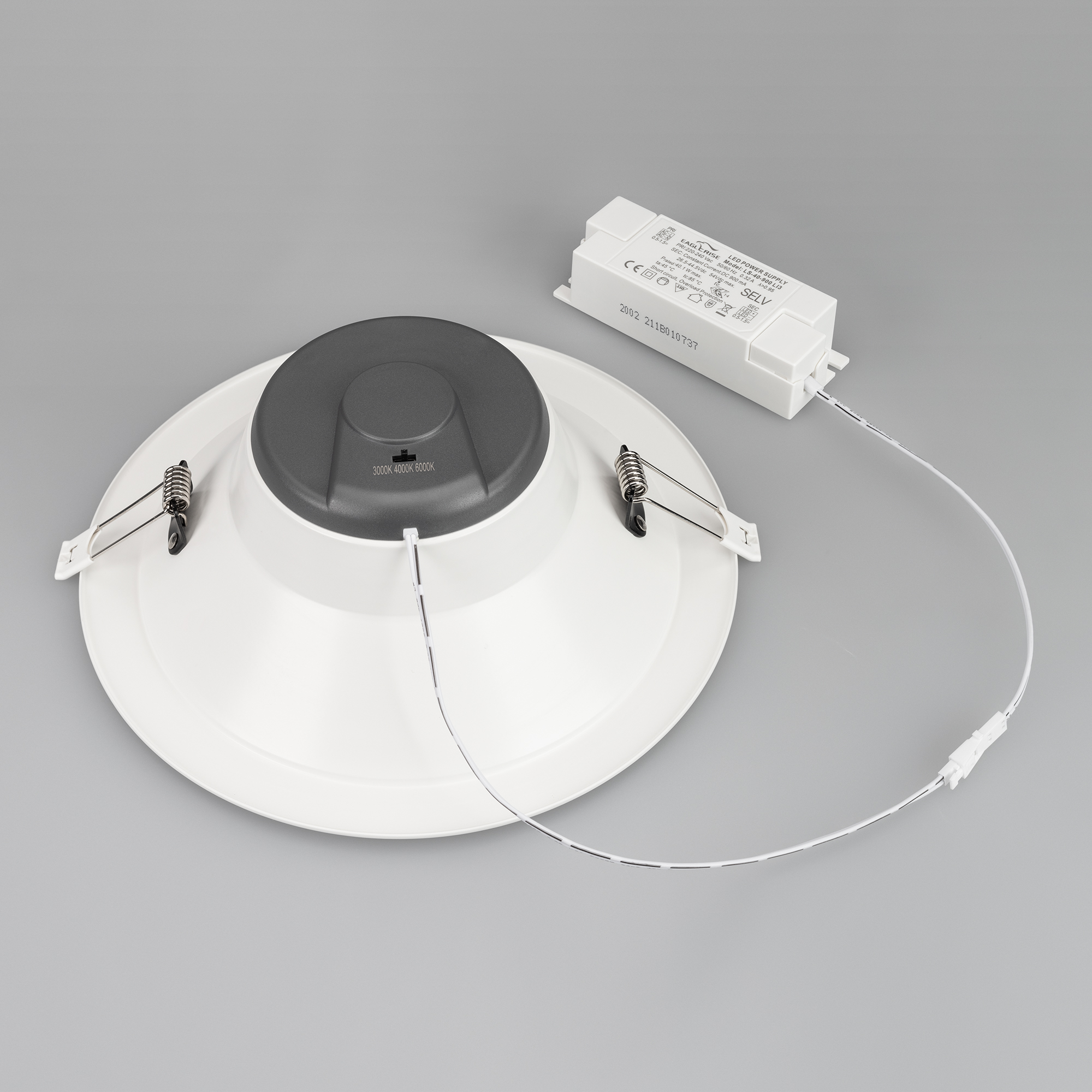 Встраиваемый светильник IM-STORM-R230-28W Day4000-MIX (WH, 80 deg, 230V) мощностью 28 Вт с изменяемой цветовой температурой 3000/4000/6000 К. Выбор цвета свечения происходит с помощью удобного переключателя на корпусе светильника. Индекс цветопередачи CRI>80 обеспечивает точное восприятие цветовых оттенков. Лаконичный алюминиевый корпус размером 232×83 мм будет гармонично смотреться в любом интерьере. Светильник с высокой светоотдачей, световым потоком 3000 лм и углом излучения 80° обеспечивает равномерное освещение без мерцания и видимости точек светодиодов. Светильник встраивается в установочное отверстие Ø195–210 мм с помощью удобных креплений.