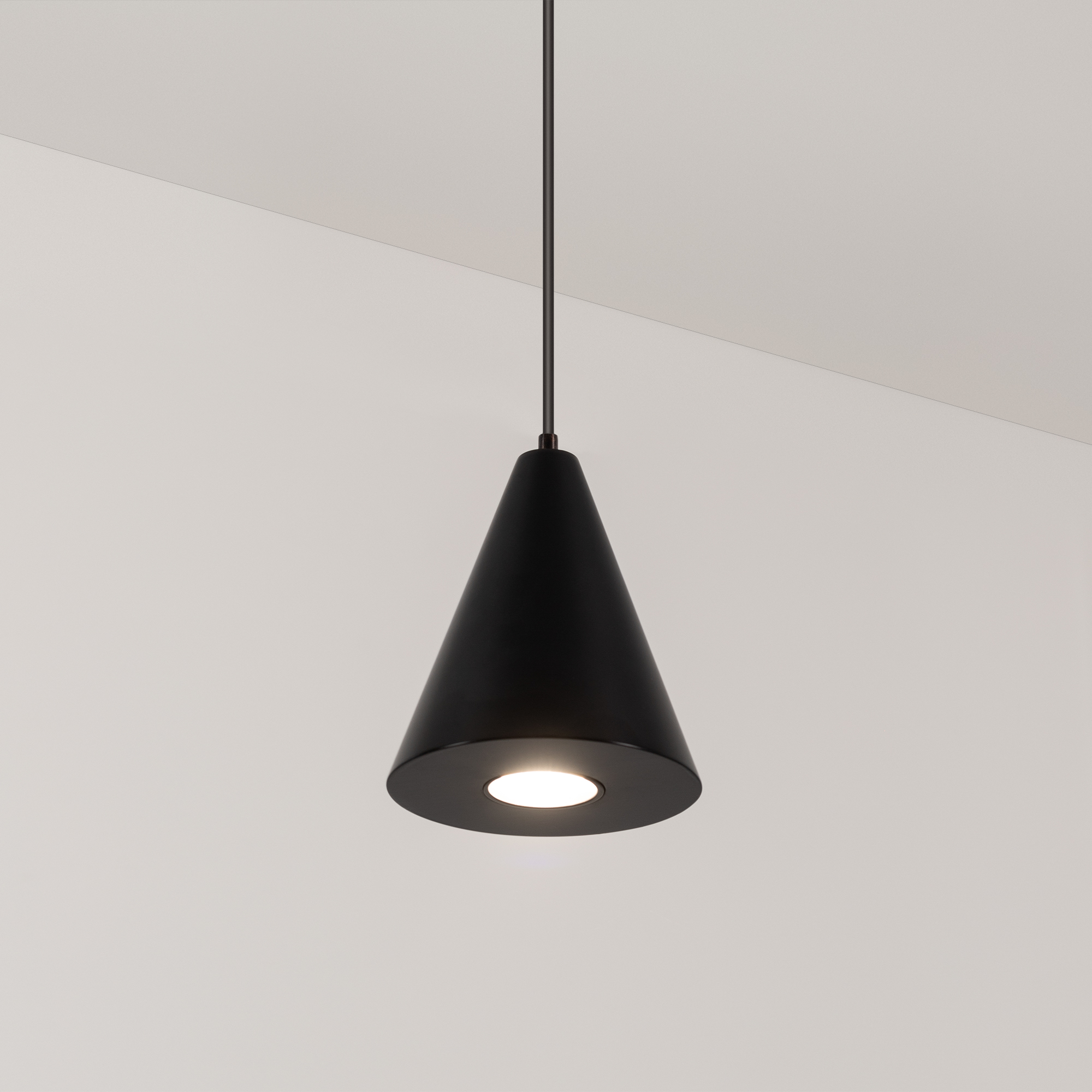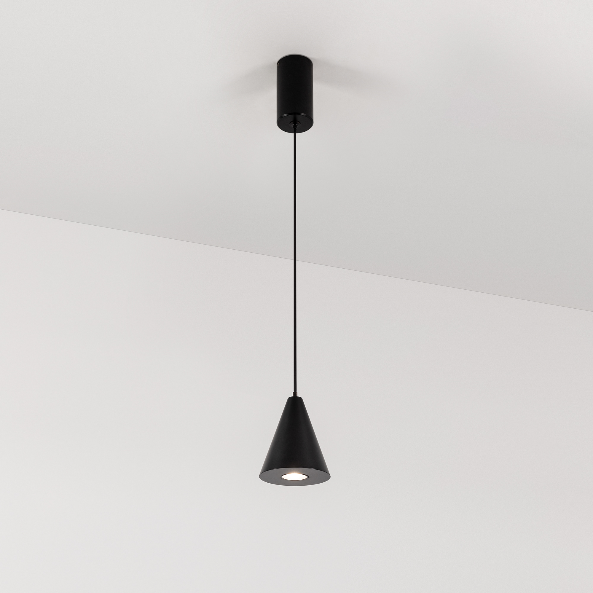 Подвесной светильник SP-ELEMENTA-CONE-R83-9W Day4000 (BK, 39 deg, 230V) мощностью 9 Вт с дневным белым цветом свечения (4000 К) и индексом цветопередачи CRI>80 предназначен для освещения торговых, офисных, жилых и других помещений. У светильника стильный дизайн и качественное исполнение, поэтому он станет не только источником света, но и стильным декоративным элементом любого интерьера. Световой поток 650 лм и узкий угол излучения 39° помогут при создании световых акцентов. Коэффициент пульсации менее 5% гарантирует комфортное и приятное для глаз освещение без мерцания. Подвесной монтаж и удобная регулировка длины подвеса без специального инструмента. Встроенный драйвер обеспечивает быстрое подключение к сети переменного тока 230 В.