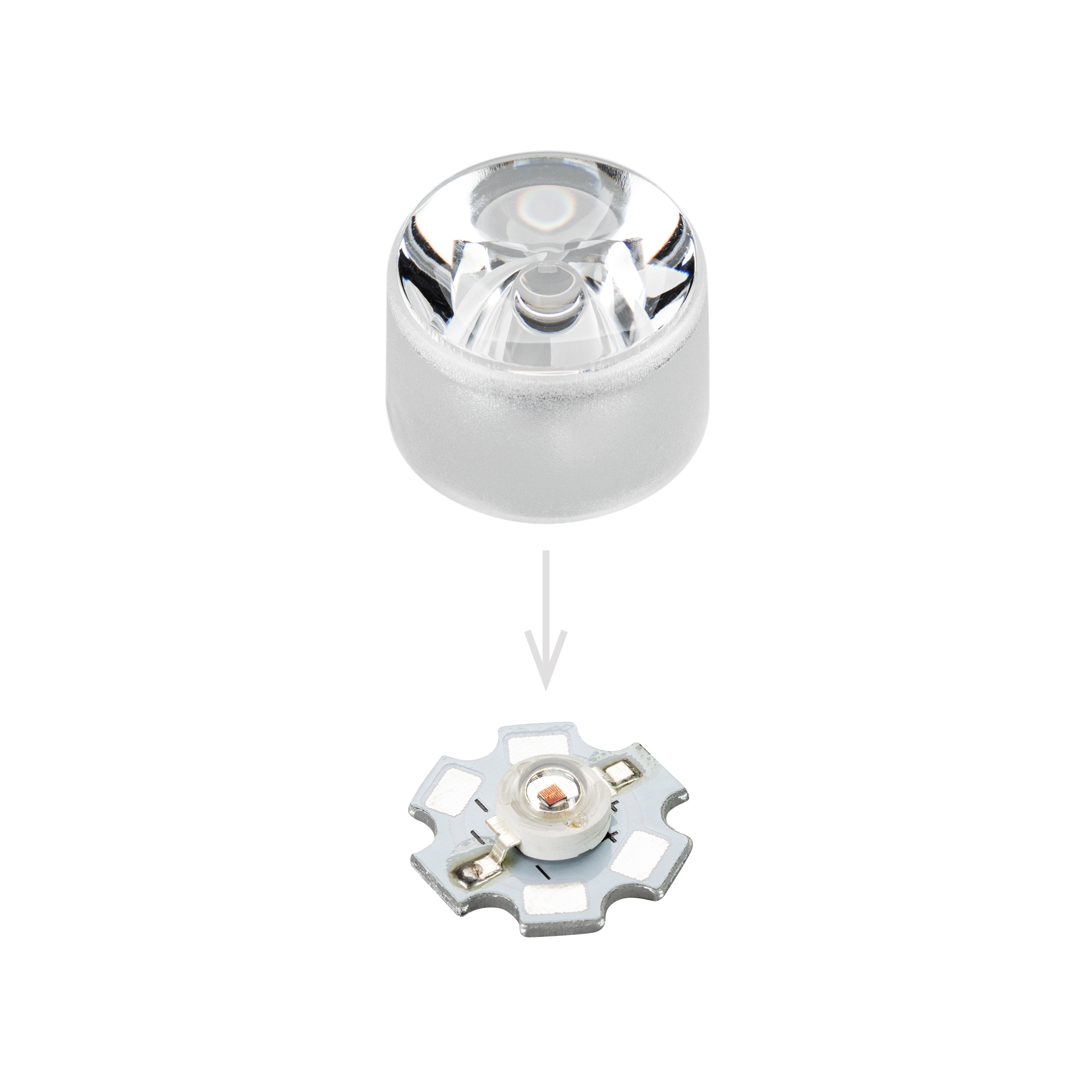 Одиночные линзы цельные (с несъемным держателем) для мощных светодиодов Emitter. Угол обзора вертикальный от 10° до 65° создает узконаправленный пучок света. Материал PС или PMMA с прозрачной линзой или микропризмой. Вторичная оптика для светодиодов необходима для формирования и управления световым потоком и повышения его эффективности.