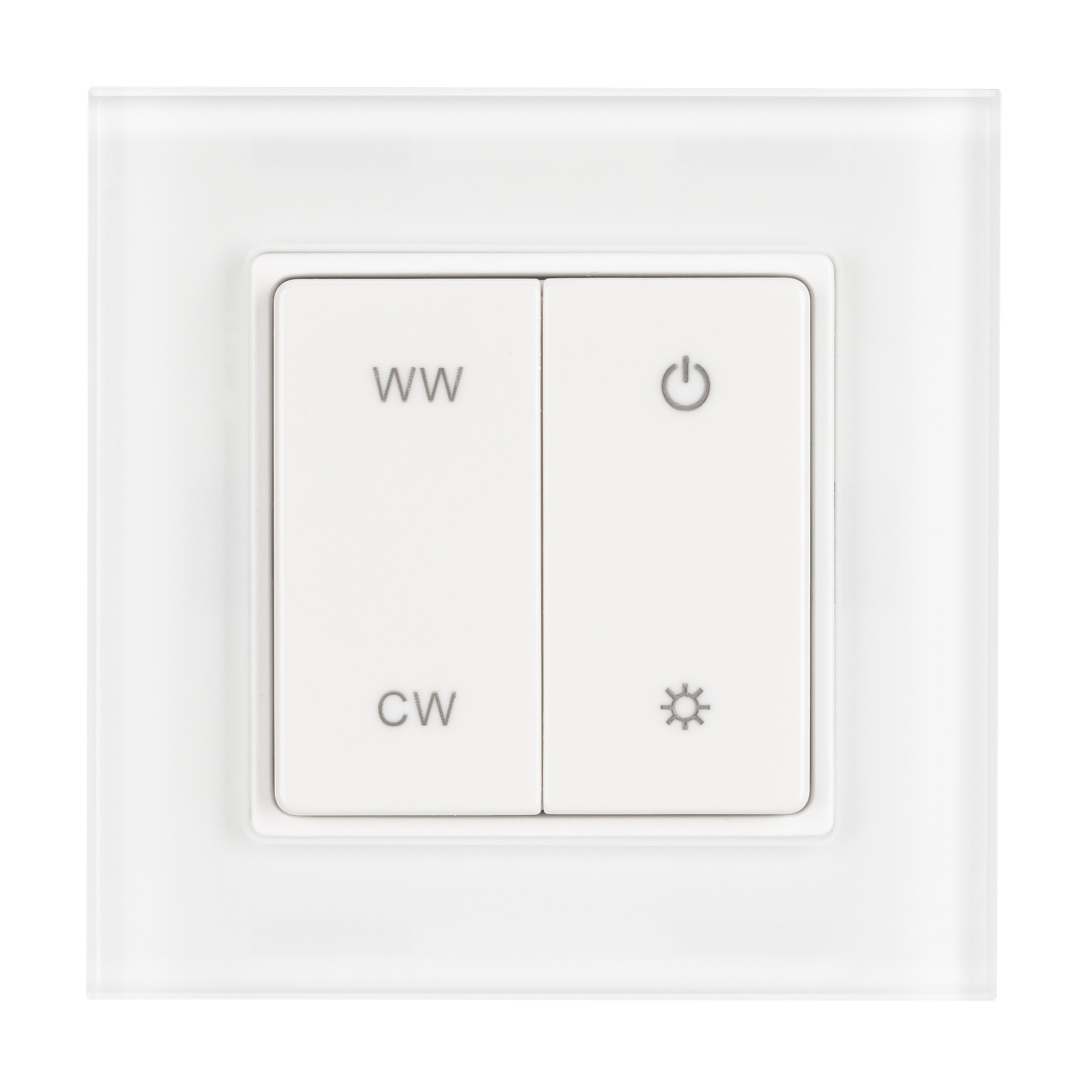 Накладная роторная панель белого цвета, изготовленная из пластика и стекла, защищенного от появления мелких царапин. Предназначена для управления мультибелыми (MIX) источниками света (ШИМ) с помощью кнопок. Основные выполняемые функции: включение и выключение света, регулировка яркости, изменение цветовой температуры. Удобное и точное управление с помощью эргономичных кнопок. Изделие применяется в качестве однозонного пульта дистанционного управления диммерами и контроллерами серии SMART. К одной панели возможно привязать неограниченное количество диммеров и контроллеров. Устройство совместимо с диммерами и контроллерами серии SMART, поддерживающими управление по радиоканалу 2.4G. Питание 3В осуществляется от батарейки CR2032. Габариты панели 86х86х15 мм, корпус выполнен из пластика, лицевая часть - из пластика, рамка - из стекла. Устройство устанавливается на любую поверхность, к которой возможно прикрутить монтажную базу панели.