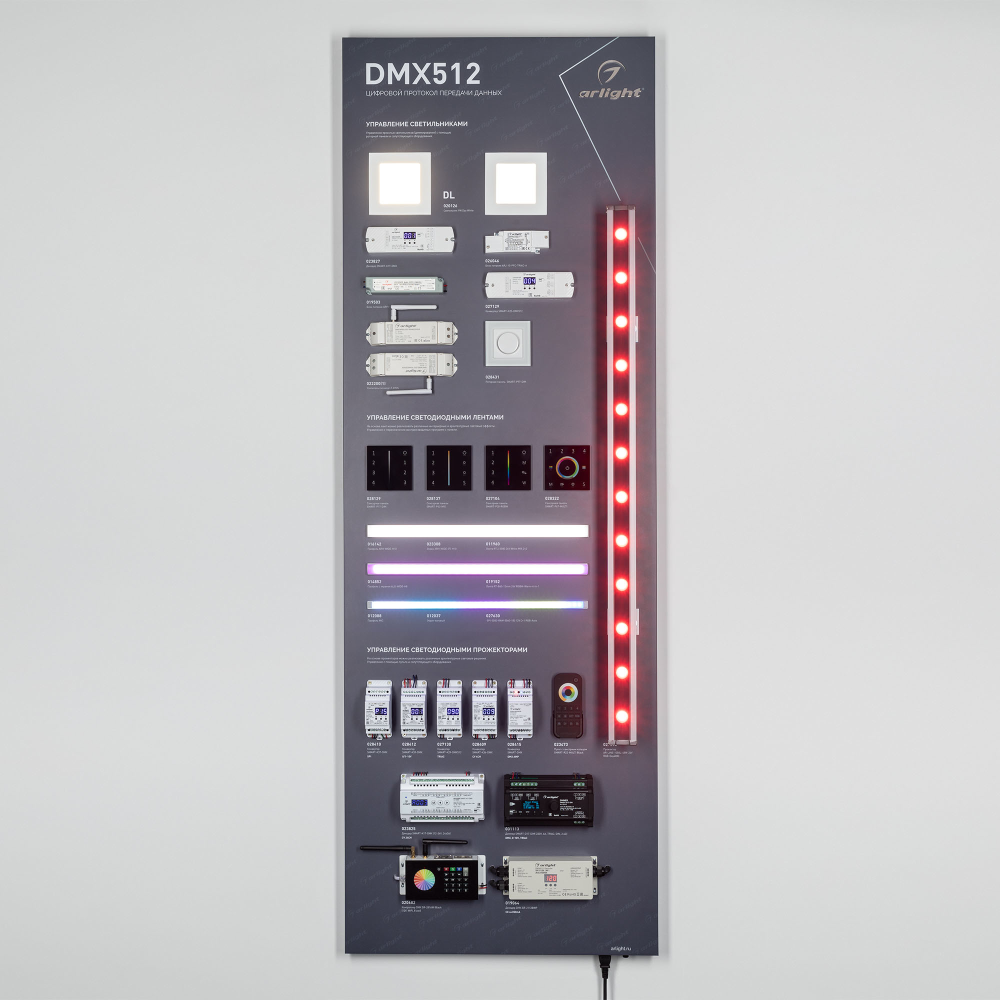 Стенд Управление светильниками DMX512 E34 1760x600mm (DB 3мм, пленка, лого) (Arlight, -)