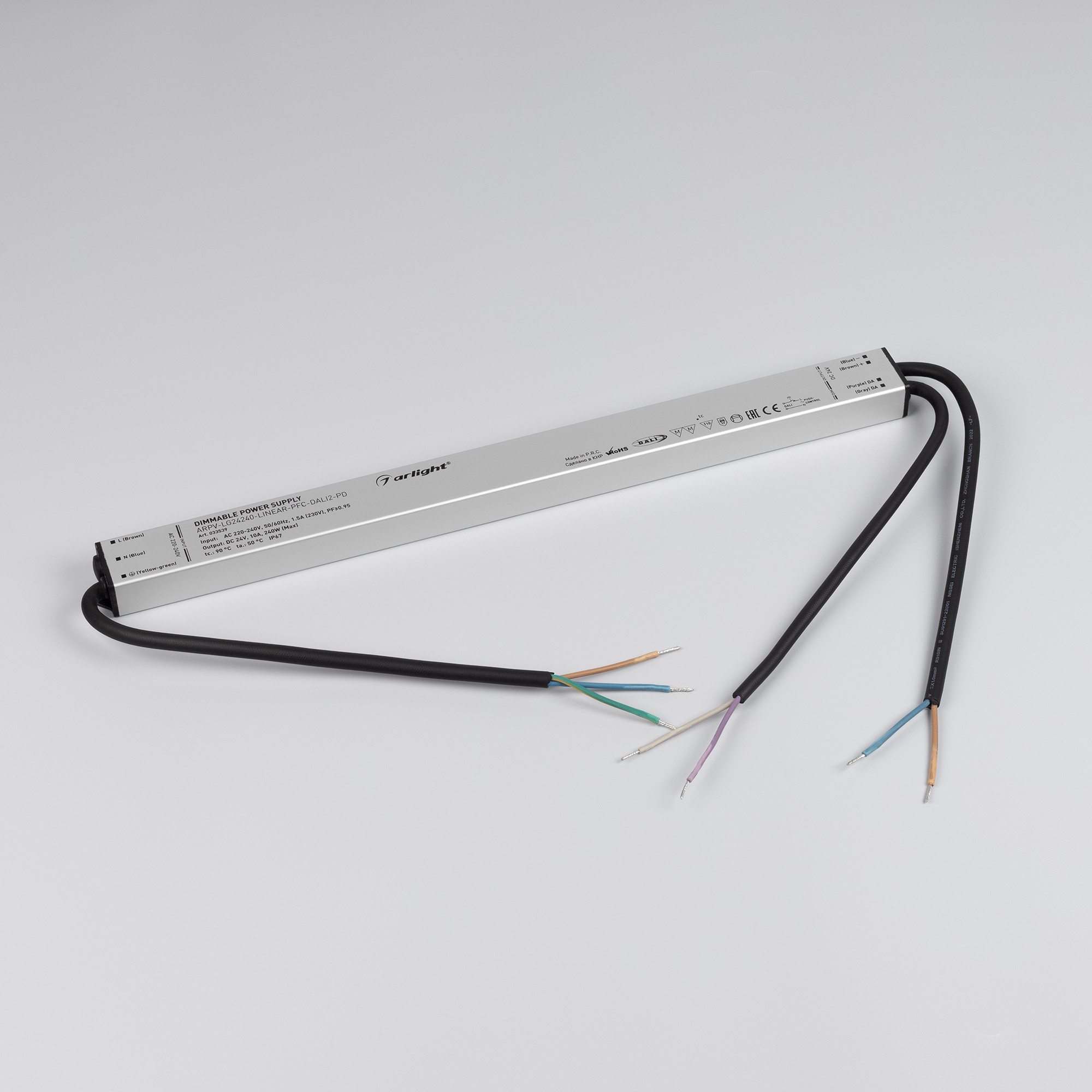 Диммируемый блок питания 24V с гальванической развязкой, ток 10А, 240Вт, с управлением DALI, c функцией PUSH-DIM, с корректором мощности, PF>0,95. Тонкий металлический корпус IP67. Вход: 220-240VAC. Выход: 24VDC, ШИМ 1кГц. Размер 400х30х21 mm.. Совместимость со стандартом EMC. Гарантия 5 лет. Допускается использование только внутри помещений.