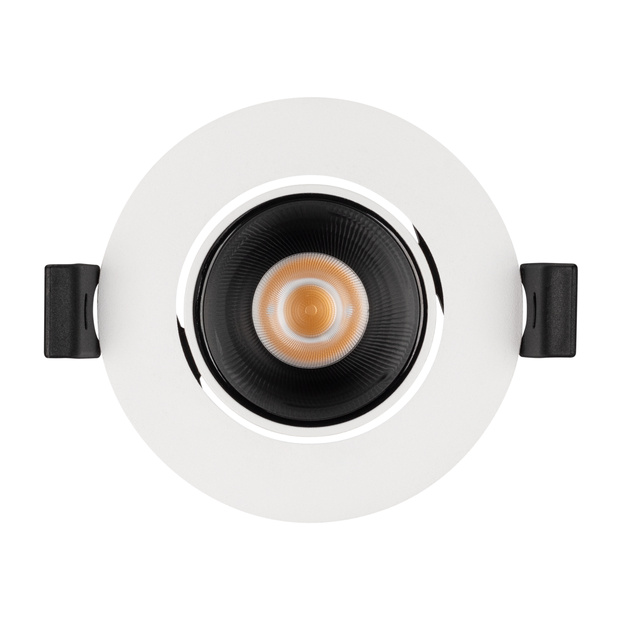 Встраиваемый поворотный светильник даунлайт. Мощность 8.4 Вт, св. поток 800 лм, 95 лм/Вт, дневной 4000 K, CRI>90, UGR<16, угол 32°, напряжение питания 230 В. Белый круглый корпус из алюминия, черный ГЛЯНЦЕВЫЙ отражатель из PMMA, степень защиты IP20. Размер: диаметр 82 мм, высота 51 мм. Монтаж встраиваемый, установочное отверстие: диаметр 75 мм. Драйвер 21-42 В, 200 мА, пульсация <2%.