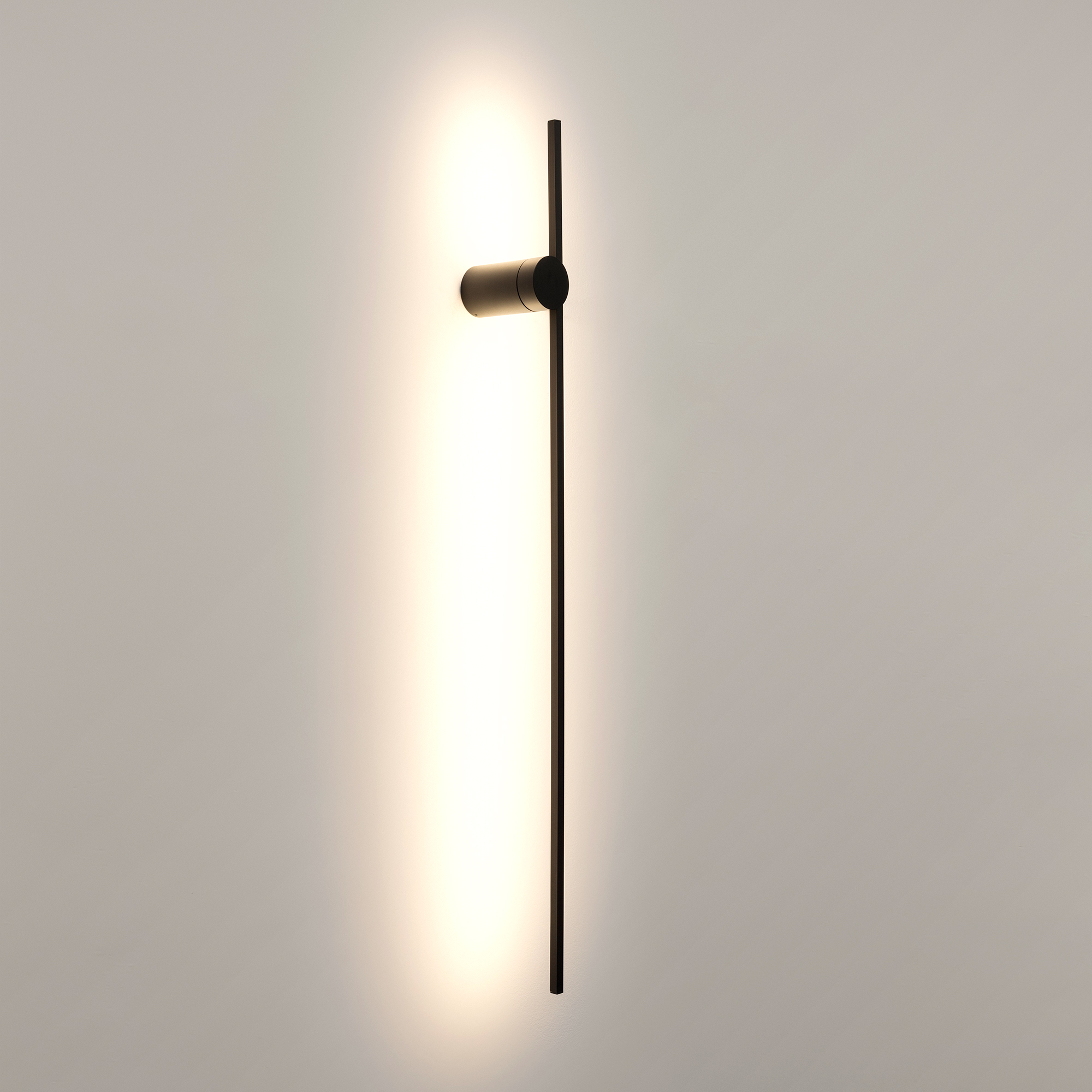 Декоративный настенный поворотный светильник. Мощность 10 Вт, св. поток 370 лм, 37 лм/Вт, теплый 3000 K, CRI>80, угол 110°, напряжение питания 230 В. Черный фигурный корпус из алюминия, экран из поликарбоната , степень защиты IP20. Размер: длина 900 мм, ширина 55 мм, высота 102 мм. Монтаж накладной. Драйвер 5-12 В, 700 мА, пульсация <0,5%. Драйвер 5-12 В, 700 мА, пульсация <0,5%. Возможность поворота светоизлучателя на 355 градусов.