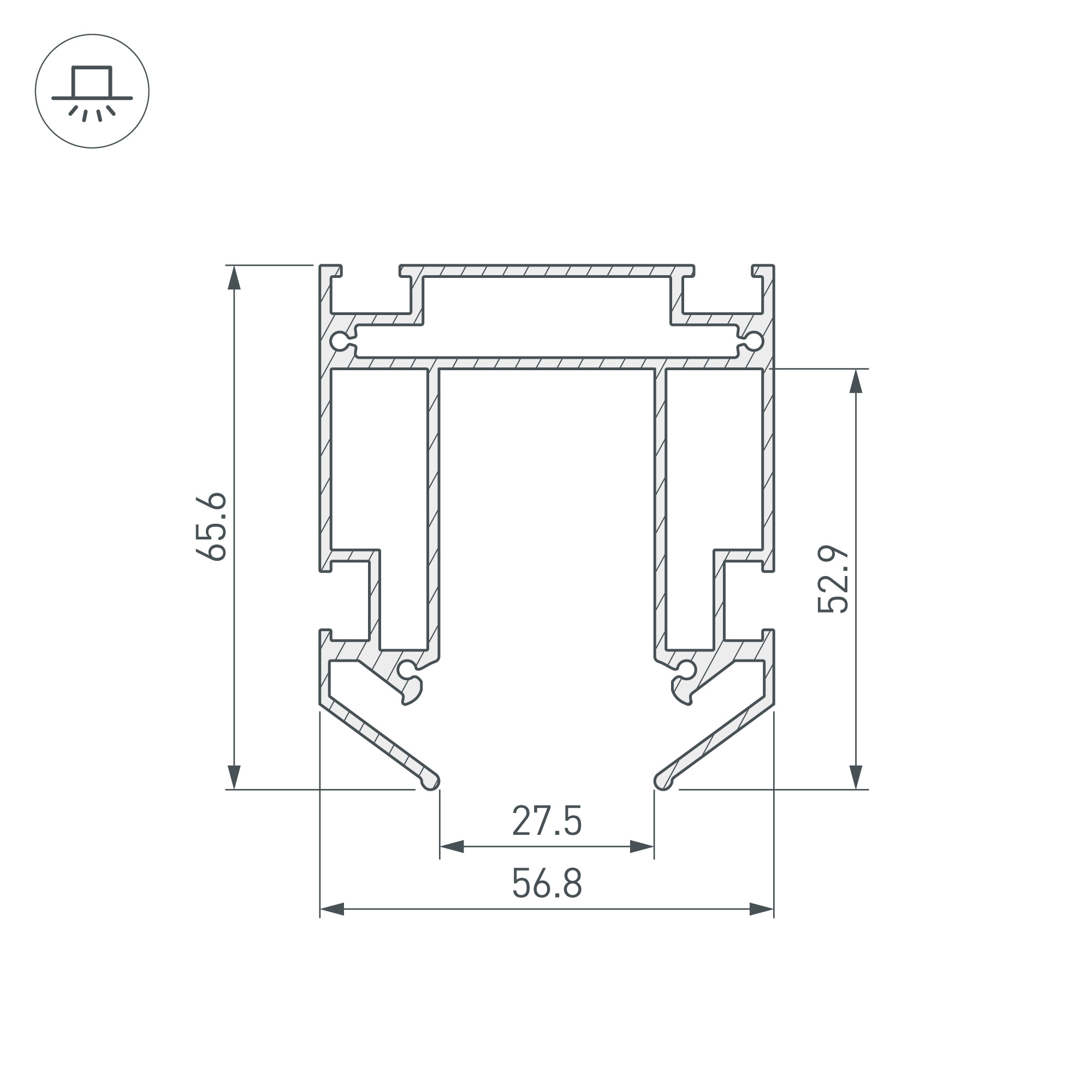Алюминиевый профиль-держатель для установки в натяжной потолок магнитного трека MAG-ORIENT-TRACK. Габаритные размеры профиля составляют 2000 мм в длину, 57 мм в ширину и 66 мм в высоту. Заглушки и другие аксессуары приобретаются отдельно. Цена указана за 1 шт. Монтажные кронштейны в комплект не входят.