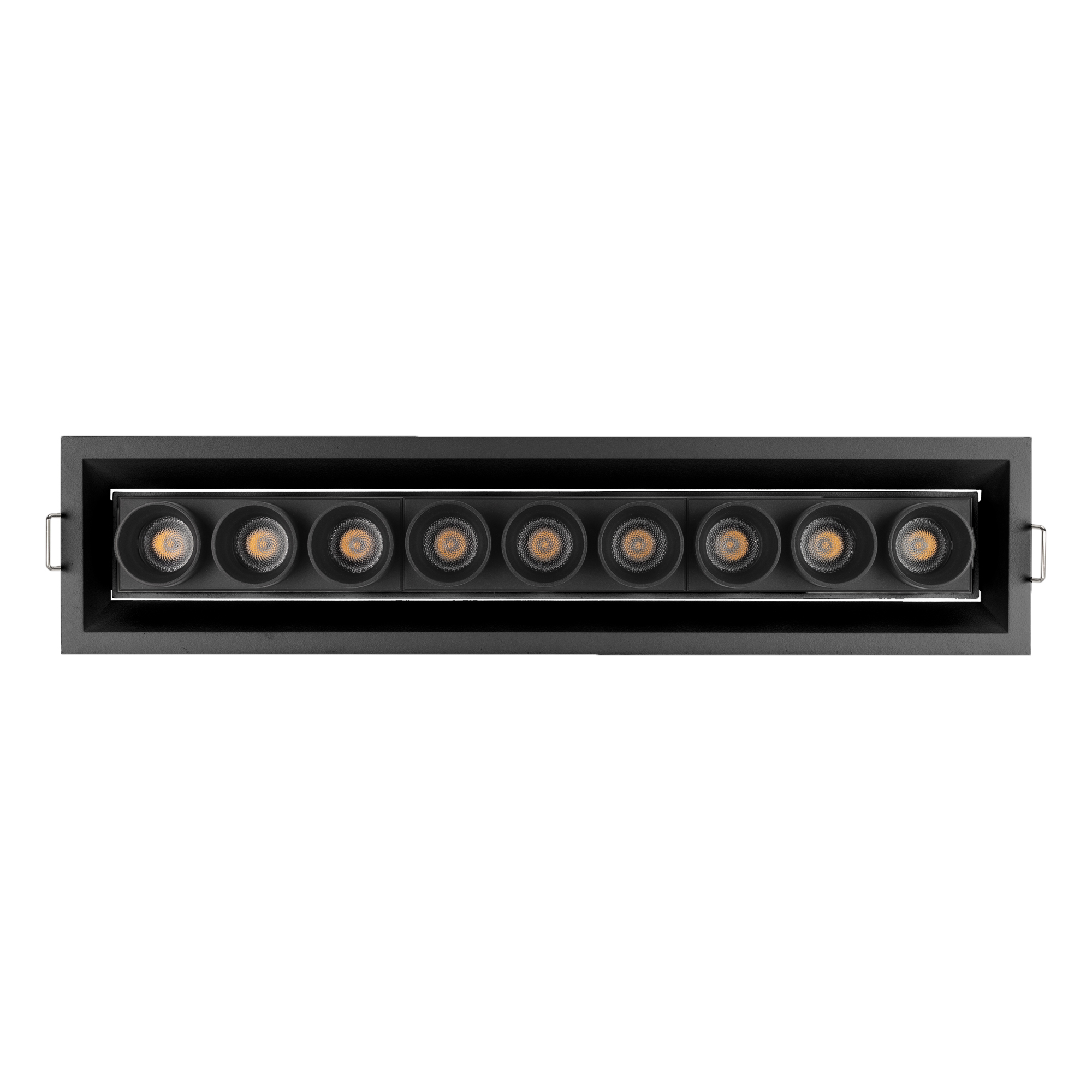 Встраиваемый поворотный светильник MS-ORIENT-BUILT-TURN-TC-S67x300-20W Warm3000 (BK-BK, 30 deg, 230V) мощностью 20 Вт с очень высоким индексом цветопередачи CRI>98 и теплым цветом свечения (3000 К) для максимально достоверного воспроизведения цветов и их оттенков. Предназначен для основного, локального и декоративного освещения жилых, офисных помещений, учебных заведений, чистых помещений и рабочих зон в медицинских учреждениях. Удобный механизм наклона светового модуля в диапазоне 25° позволяет регулировать направление света при создании акцентного освещения. У светильника узкий угол излучения 30°, световой поток 1500 лм и низкая пульсация <1%, что создает качественное, равномерное освещение без мерцаний. Светильник оснащен драйвером и встраивается в установочное отверстие Ø295×60 мм. Диммирование возможно при замене штатного драйвера.