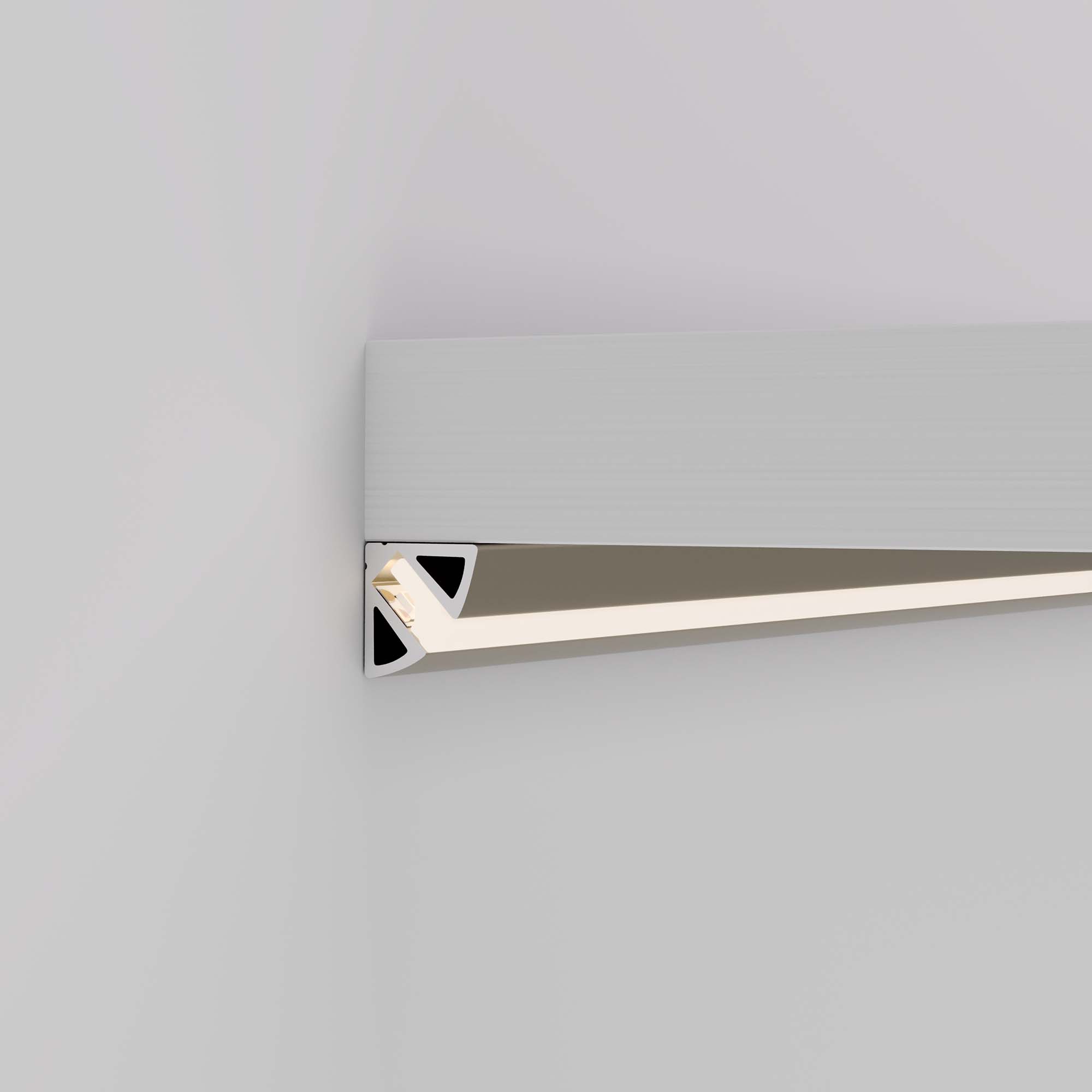 Накладной угловой профиль серо-оливкового цвета из анодированного алюминия для подсветки мебели, пазов, ниш и других элементов интерьера. Габаритные размеры профиля составляют 2000 мм в длину, 11 мм в ширину и 11 мм в высоту. Площадка для установки светодиодных лент позволяет использовать ленту шириной до 5,2 мм и мощностью до 15 Вт/м. Это обеспечивает гибкость в выборе светодиодных лент и создает потрясающие световые решения.