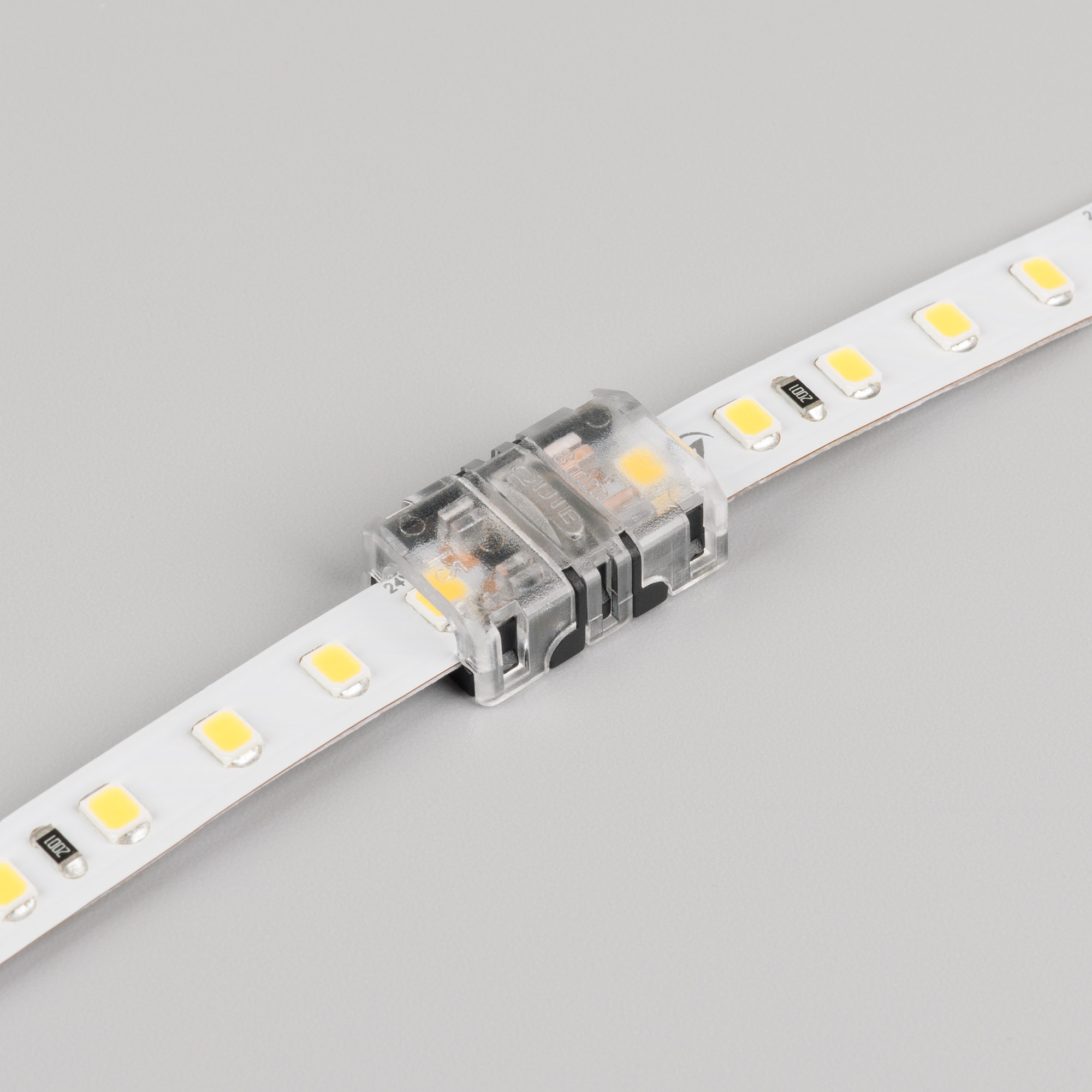 Одиночный коннектор для соединения 2-х отрезков открытых IP20 светодиодных одноцветных лент шириной 8 мм с высокой плотностью светодиодов. Материал - прозрачный пластик. Обеспечивает соединение без видимых разрывов. Максимальный допустимый ток 3 А, напряжение 3-24 В.