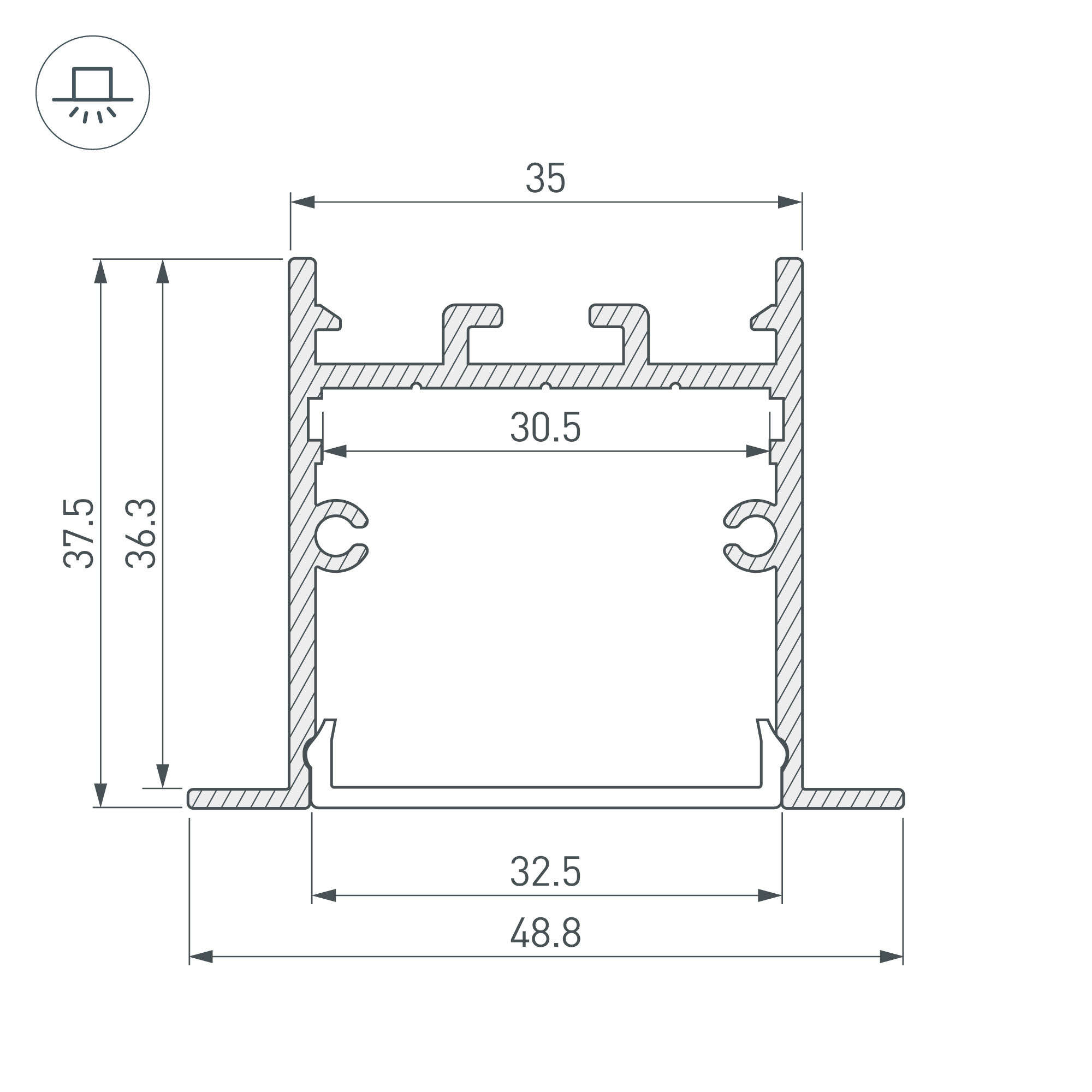 Встраиваемый профиль с накладным фланцем из анодированного алюминия для основной и контурной подсветки помещений. Габаритные размеры профиля составляют 2000 мм в длину, 49 мм в ширину и 37,5 мм в высоту, паз для установки 35 мм. Площадка для установки светодиодных лент позволяет использовать ленту шириной до 30,5 мм и мощностью до 39,4 Вт/м. Это обеспечивает гибкость в выборе светодиодных лент и создает потрясающие световые решения. Экраны, заглушки и другие аксессуары не включены в комплект и приобретаются отдельно. Цена указана за 1 метр профиля. Отличное решение для создания современных световых проектов.