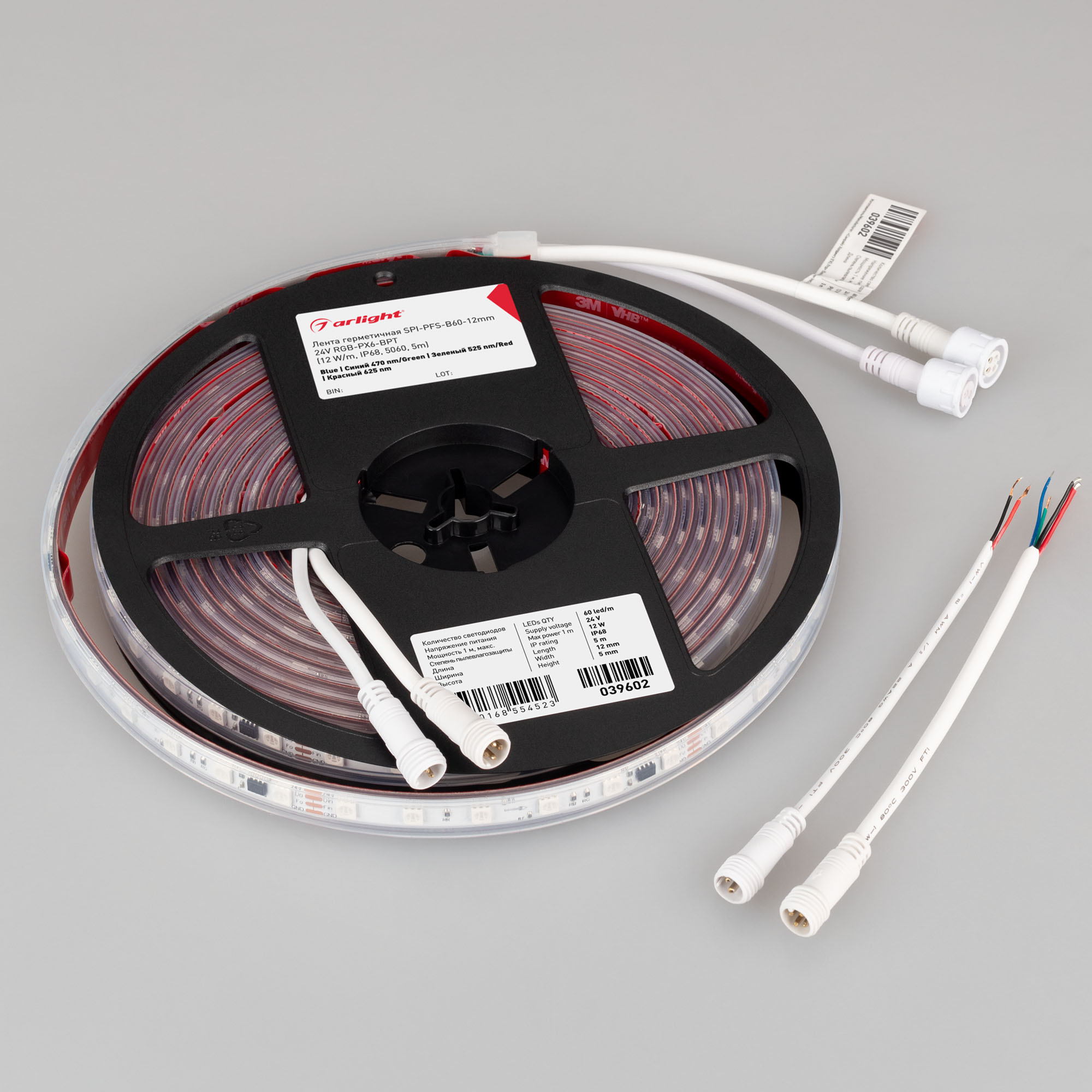 Светодиодная лента герметичная SPI-PFS-B60-12mm 24V RGB-PX6-BPT (12 W/m, IP68, 5060, 5m) (Arlight, бегущий огонь)