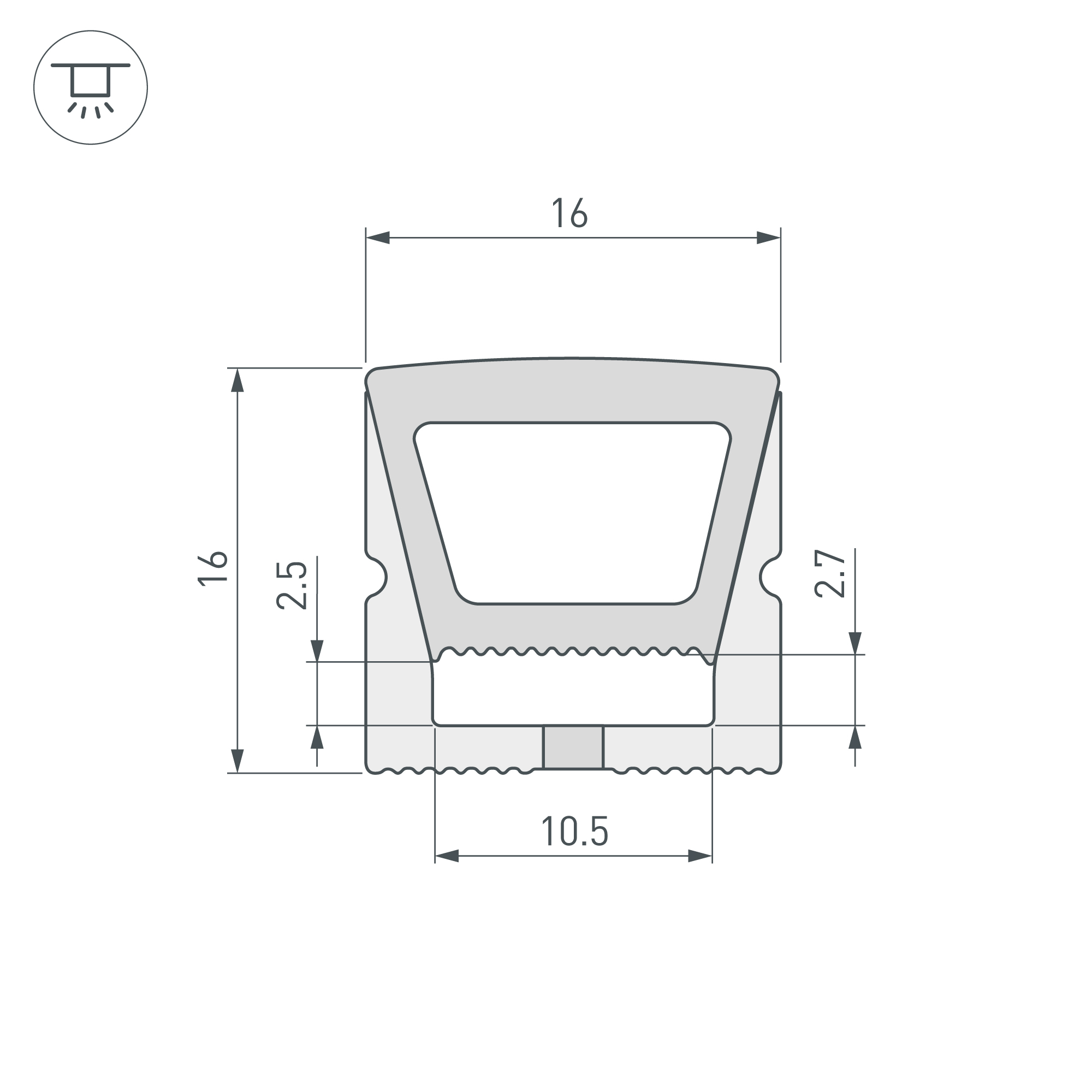 Цельнолитой силиконовый гибкий профиль белого цвета с УФ-защитой. Габаритные размеры профиля составляют 50000 мм в длину, 16 мм в ширину и 16 мм в высоту. Вертикальный изгиб TOP, минимальный радиус изгиба 60 мм. Угол излучения 115°. Для удобства установки ленты по всей длине профиля протянута нить. Площадка для установки светодиодных лент позволяет использовать ленту шириной от 10 до 10,5 мм, высотой до 2,85 мм и мощностью до 10 Вт/м. Это обеспечивает гибкость в выборе светодиодных лент и создает потрясающие световые решения. Для установки во влажных помещениях необходима герметизация при помощи двухкомпонентного эпоксидного герметика. Класс пылевлагозащиты – IP65 (при соблюдении технологии герметизации). Этот продукт представляет отличное решение для создания современных световых проектов и обеспечивает надежную и стильную основу для установки светодиодов.