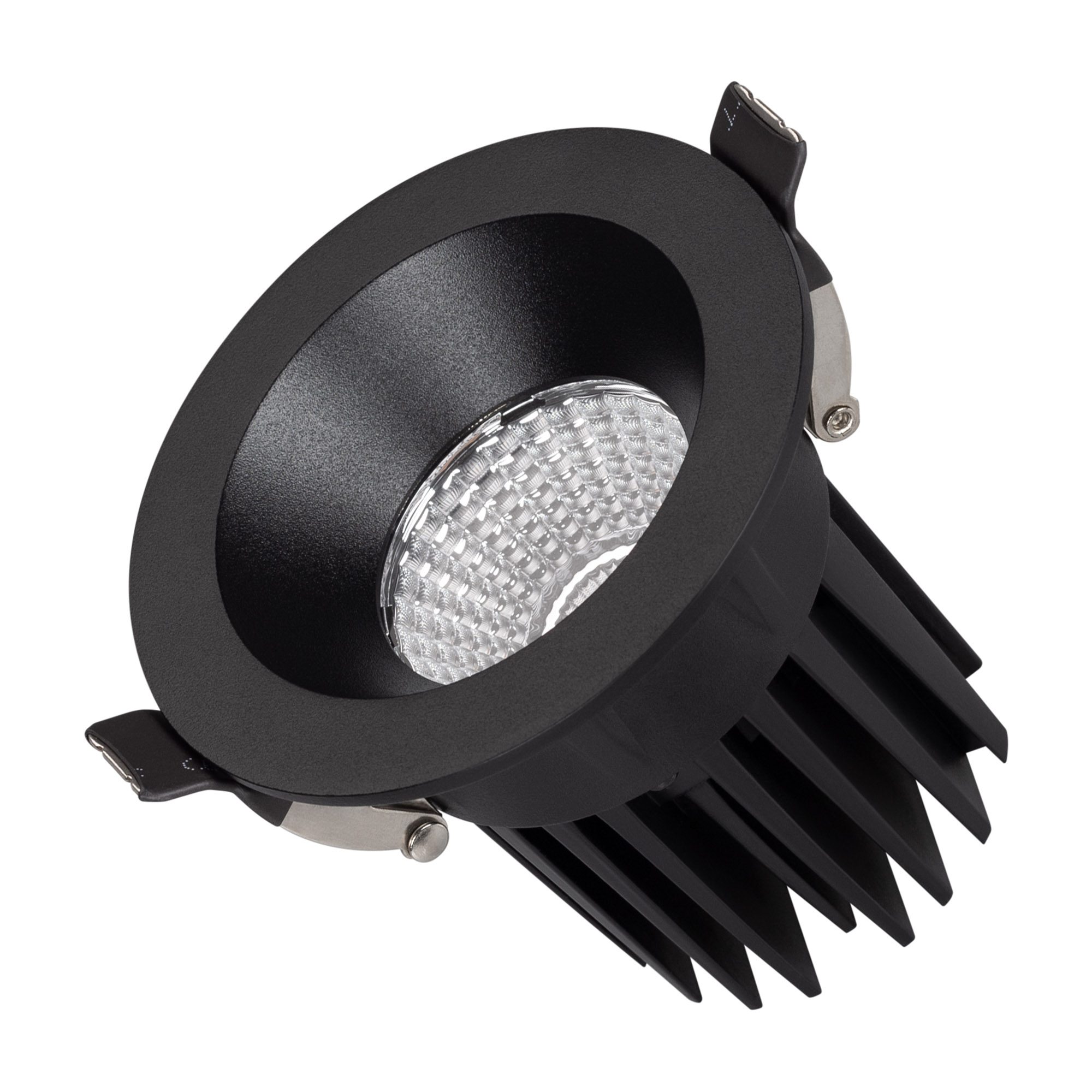 Встраиваемый светильник даунлайт. Мощность 10 Вт, св. поток 750 лм, 75 лм/Вт, тёплый 3000 K, CRI>90, угол 60°, напряжение питания 230 В. Чёрный круглый корпус из алюминия, экран PMMA, степень защиты IP54. Размер: диаметр 86 мм, высота 80 мм. Монтаж встраиваемый, установочное отверстие: диаметр 80 мм. Драйвер IP54, В, 20-40 В, 250 мА, пульсация <1%.