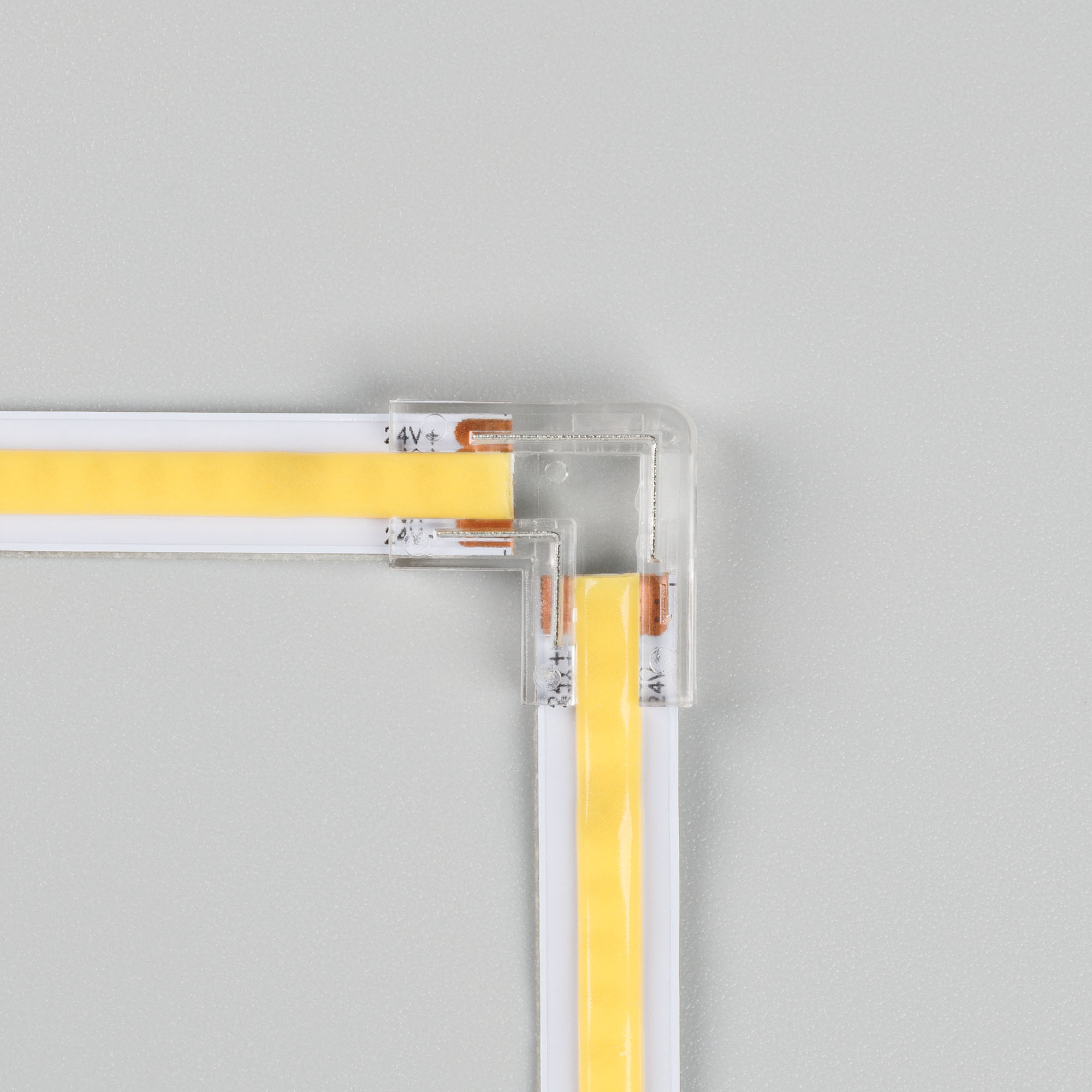 Угловой коннектор STS (лента-лента) для соединения двух отрезков открытых одноцветных светодиодных лент COB шириной 8 мм. Материал - прозрачный пластик. Обеспечивает соединение без видимых разрывов линии свечения. Максимальный допустимый ток 3 А, максимальное напряжение 24 В. Цена за 1 шт. Пакет 10 шт.