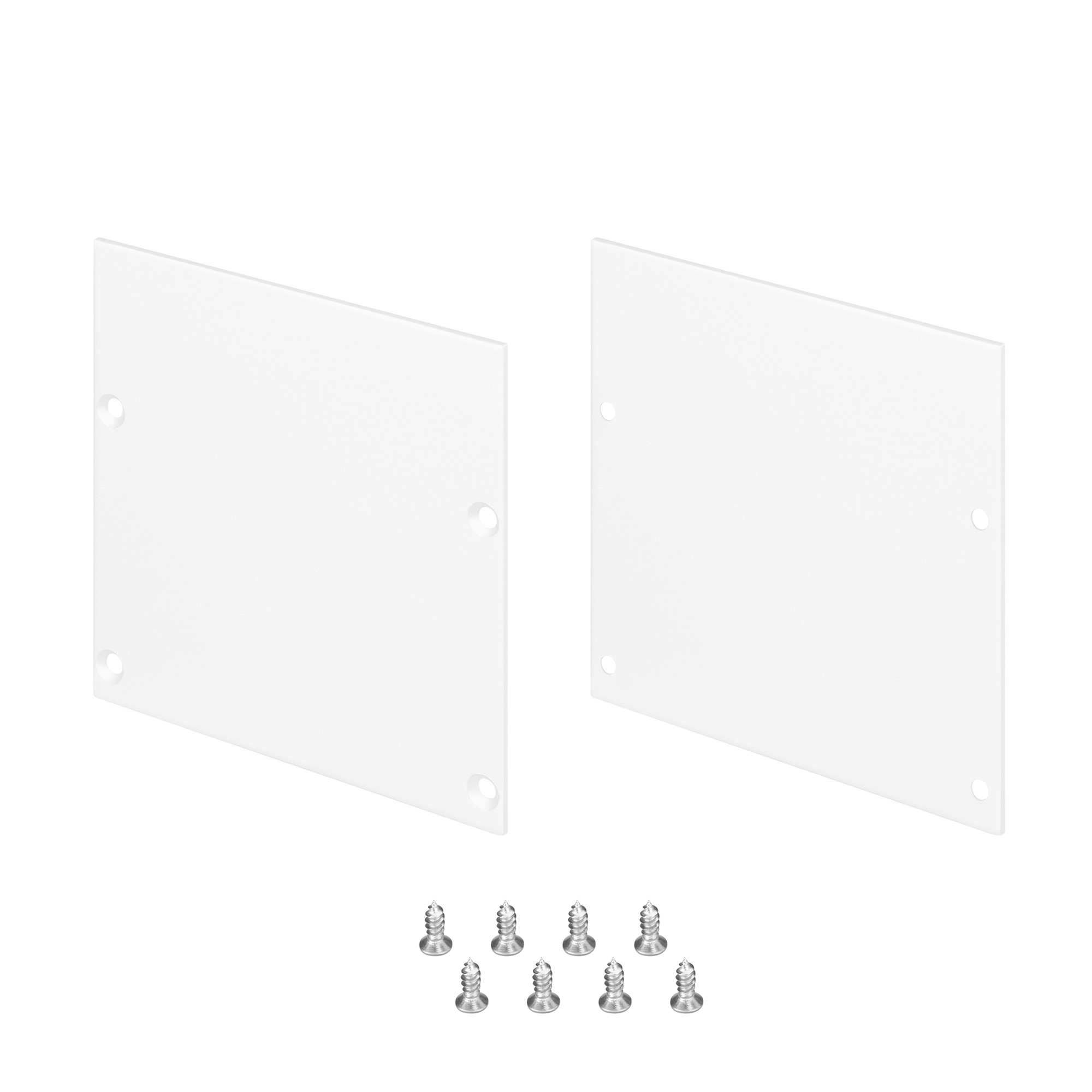 Пара заглушек для профиля LINE-S-7575. Цвет - белый. В комплекте 2 заглушки, 8 шурупов. Цена за 1 комплект.