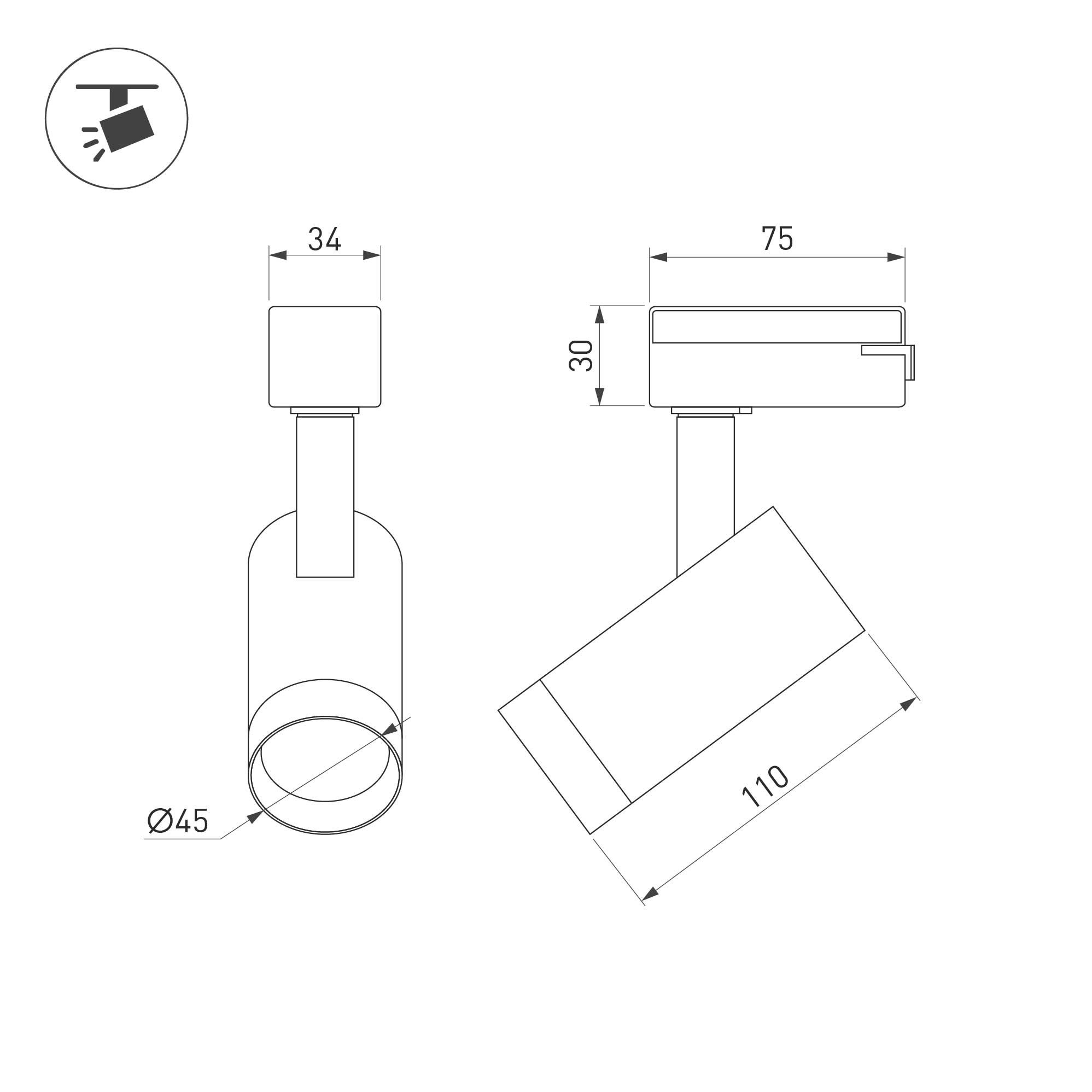 Светильник для треков/шин 2 провода. Мощность 7 Вт, св. поток 540 лм, 77 лм/Вт, дневной 4000 K, CRI>94, угол 24°, напряжение питания 230 В. Белый круглый корпус из алюминия, материал линзы PMMA , степень защиты IP20. Размер: диаметр 45 мм, высота 165 мм. Монтаж на трек 1-фазный. Драйвер встроенный 8.5-40 В, 150 мА., пульсация <2%.
