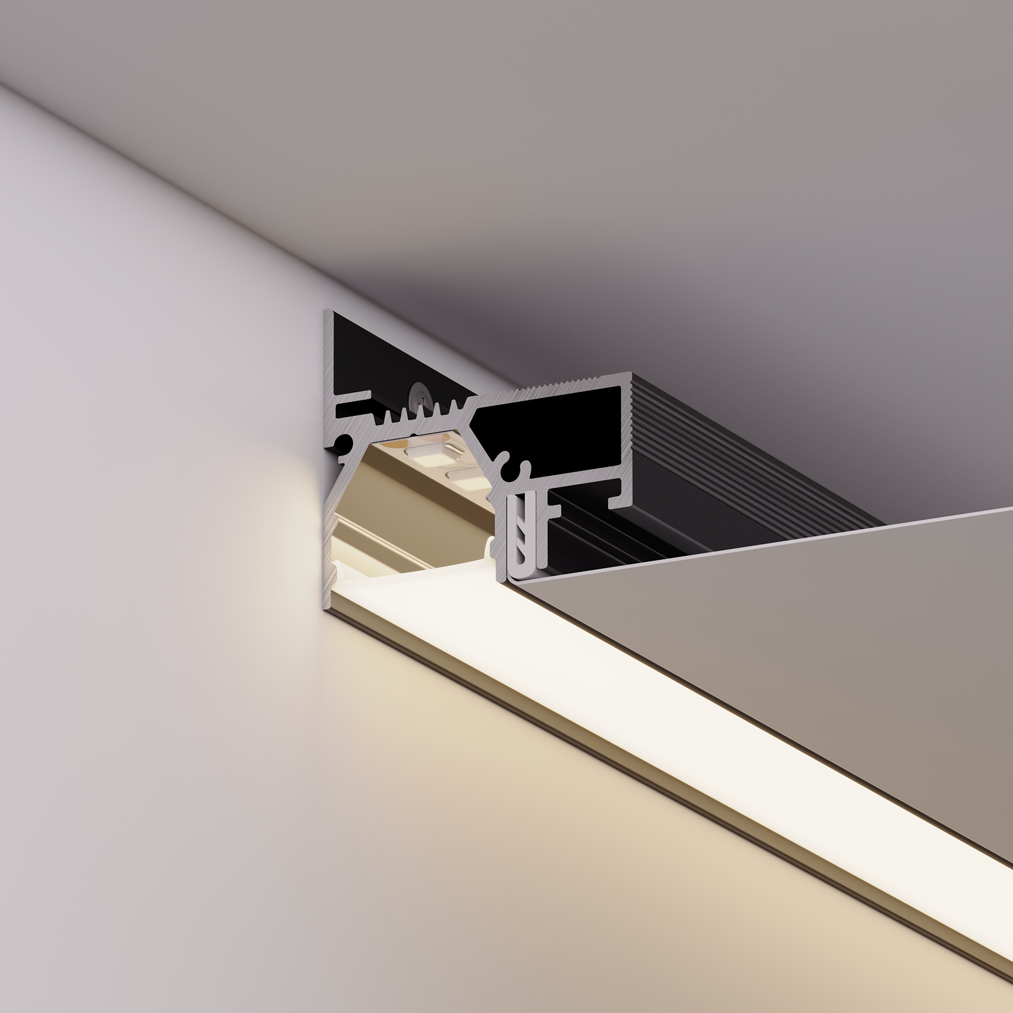 Алюминиевый профиль черного цвета - RAL9005 (порошковая окраска). Боковая линия света в натяжных потолках. Решение 2-в-1: служит каркасом для крепления натяжного потолка и профилем для установки светодиодной ленты. Источник света находится вровень с плоскостью натяжного потолка. Демпферная система крепления полотна натяжного потолка подходит как для тканевых, так и для ПВХ полотен. Габаритные размеры профиля составляют 2000 мм в длину, 41,5 мм в ширину и 37,4 мм в высоту. Основная площадка для установки светодиодных лент шириной до 11,5 мм и две дополнительные площадки шириной по 10мм. Это обеспечивает гибкость в выборе светодиодных лент и создает потрясающие световые решения. Экран и другие аксессуары не включены в комплект и приобретаются отдельно. Цена указана за 1 метр профиля. Отличное решение для создания современных световых проектов.