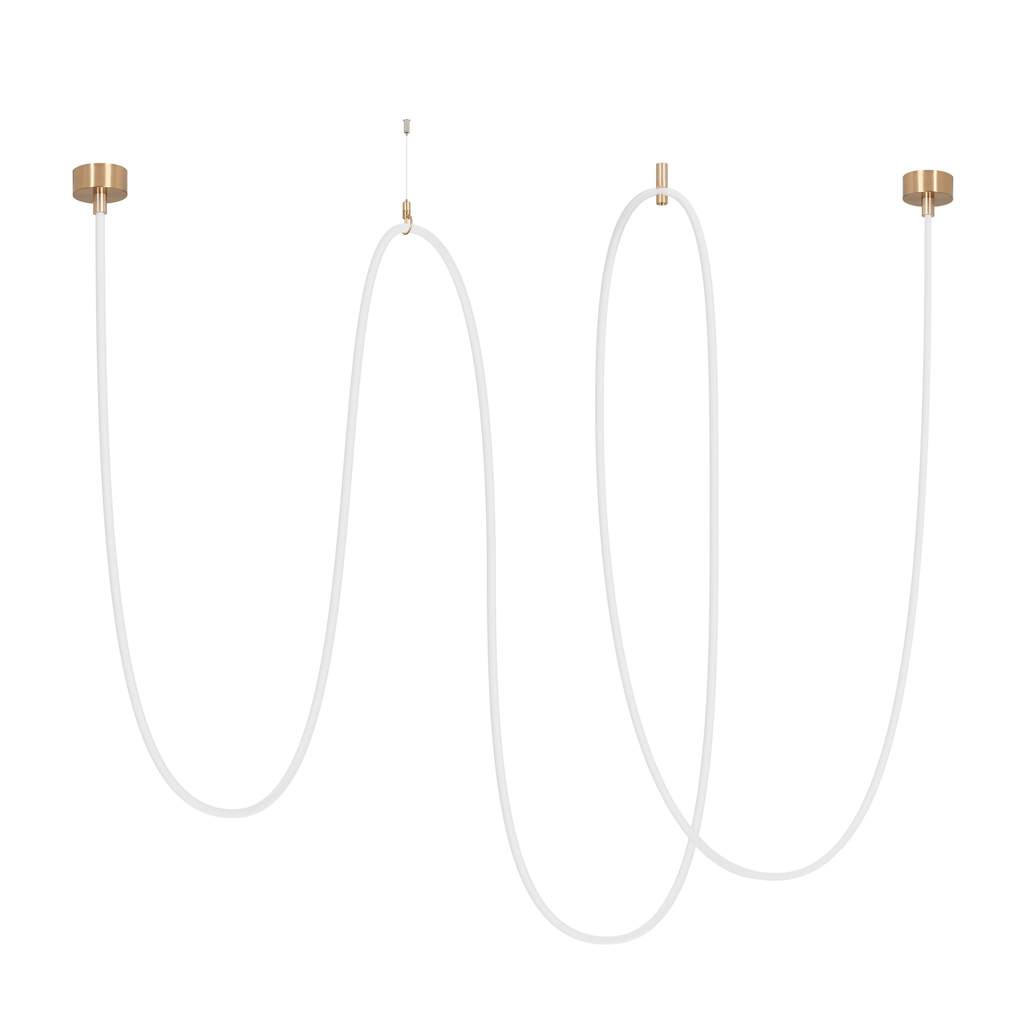 Подвесной светильник. Мощность 110 Вт, св. поток 5960 лм, 54 лм/Вт, тёплый 3000 K, CRI>90, угол 360°, напряжение питания 230 В. Золотой круглый корпус из стали, силиконовая герметичная лента, степень защиты IP20. Размер: общая высота чаши 85 мм, высота чаши без вывода под неон 50 мм, диаметр вывода под неон 35 мм, диаметр чаши 130 мм, диаметр силиконовой герметичной ленты 18 мм, длина силиконовой герметичной ленты 10000 мм. Монтаж накладной. Блок питания 24 В, 2500 мА, пульсация <5% (2 шт.). Аксессуары (подвес и крепление) приобретаются отдельно.