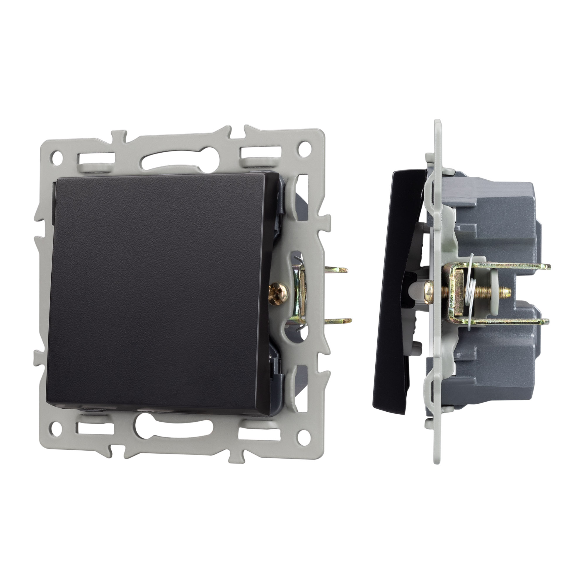 Механизм выключателя клавишный на 1 пост 1 клавиша (перекрёстный), с суппортом из алюминия. Цвет - черный. Степень пылевлагозащиты - IP20.
