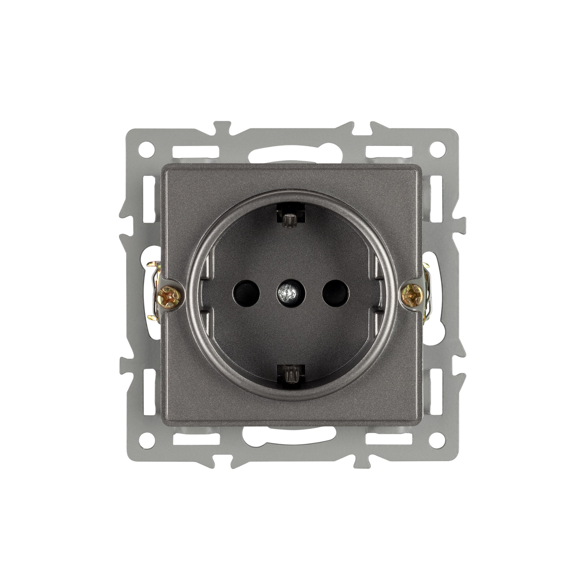 Механизм розетки с заземлением на 1 пост, с суппортом из алюминия. Цвет - серый. Степень пылевлагозащиты - IP20.