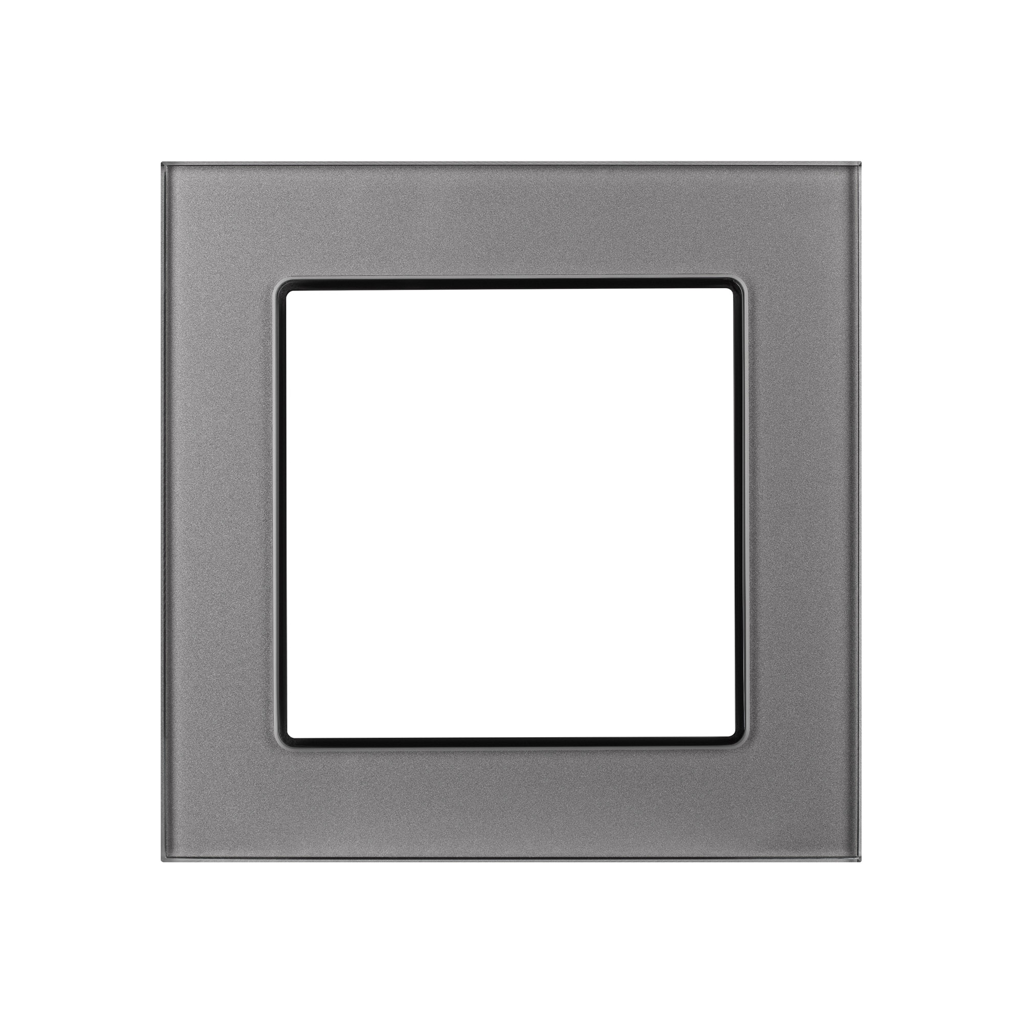 Рамка стеклянная на 1 пост, под встраиваемый механизм (квадрат). Цвет - серый. Ориентации монтажа - горизонтальная.