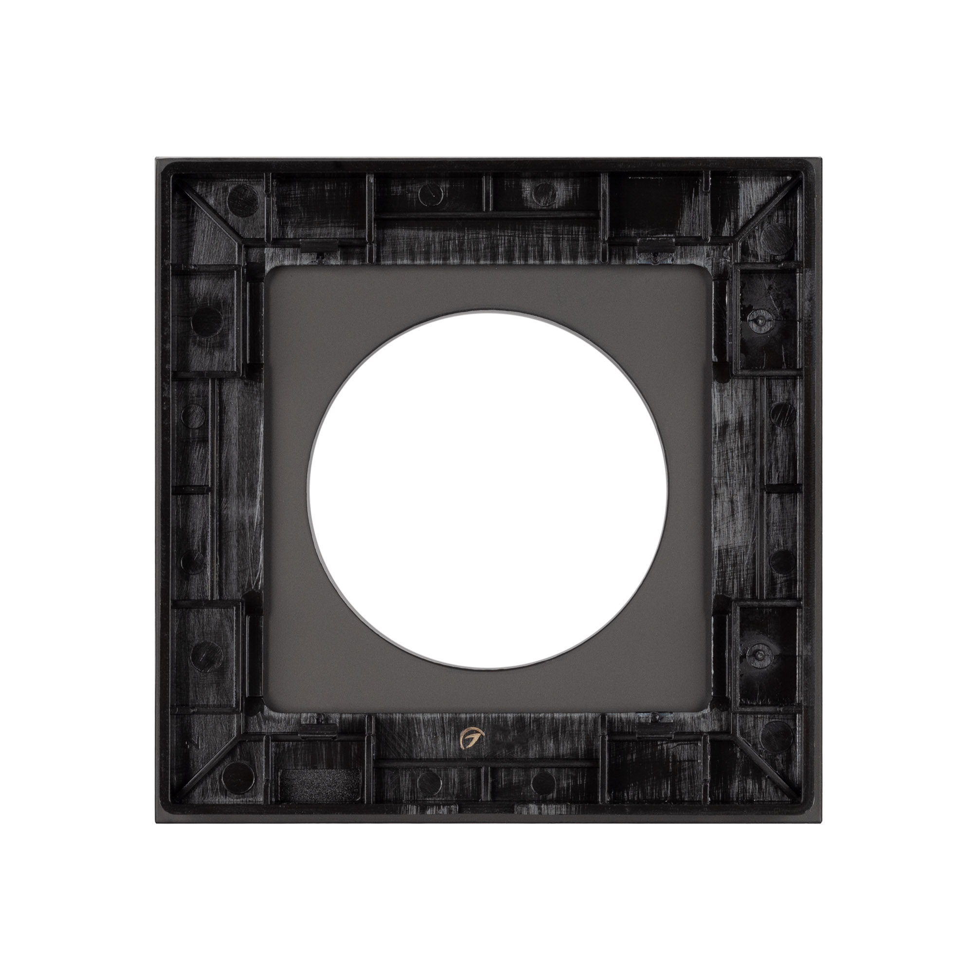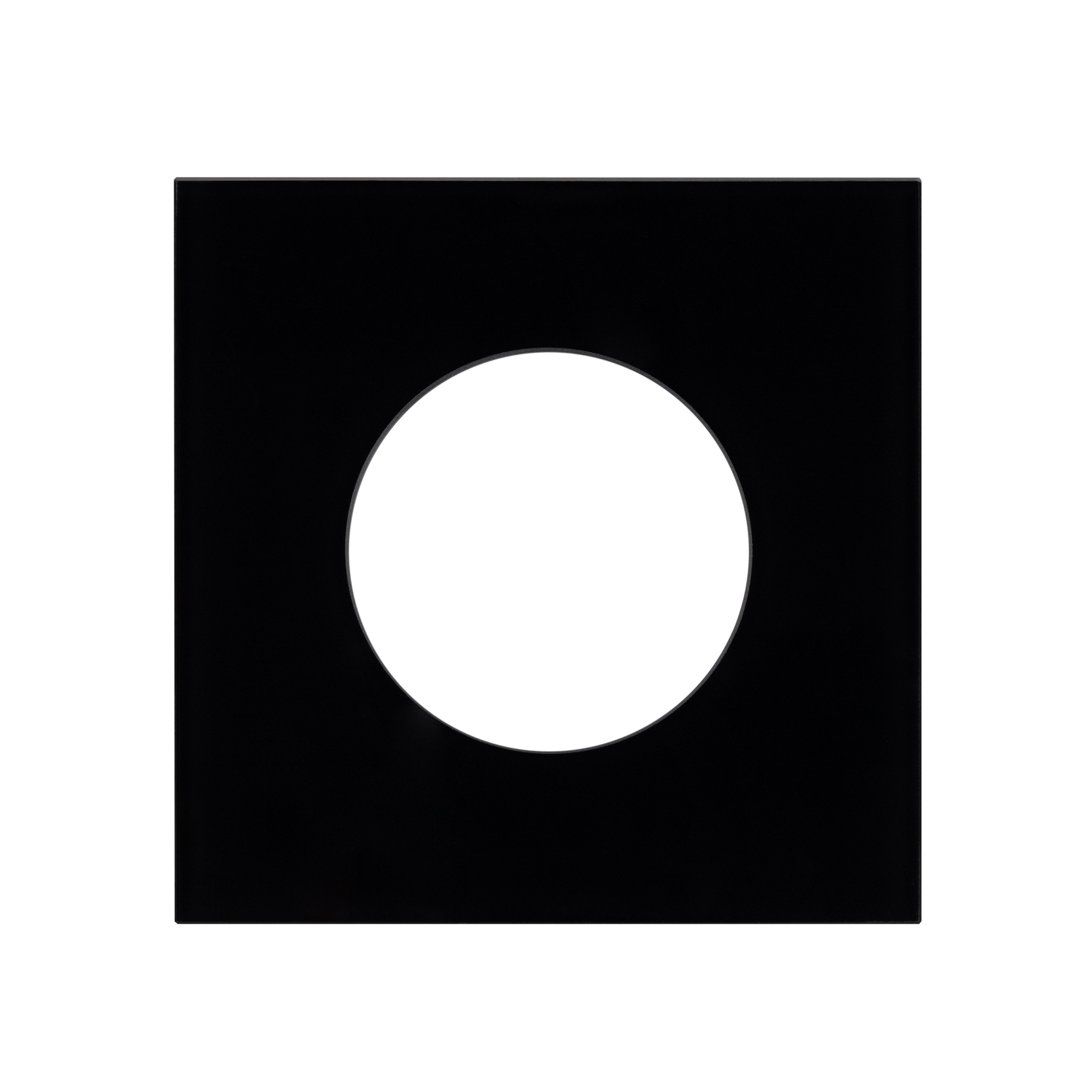 Рамка стеклянная на 1 пост, под встраиваемый механизм. Вырез под функциональную часть круг. Цвет - черный. Ориентации монтажа - горизонтальная.