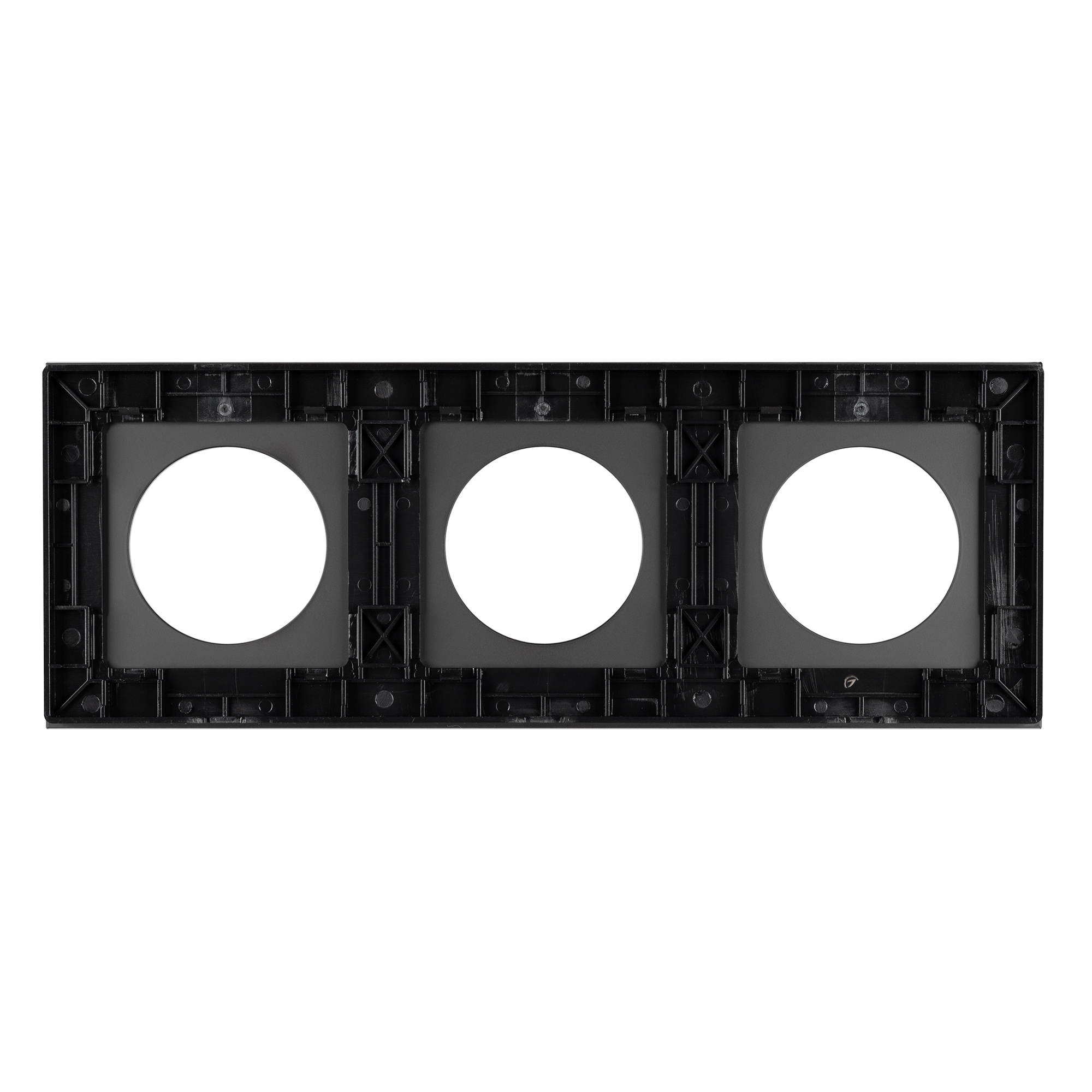 Рамка стеклянная на 3 поста, под встраиваемый механизм. Вырез под функциональную часть круг. Цвет - черный. Ориентации монтажа - горизонтальная.