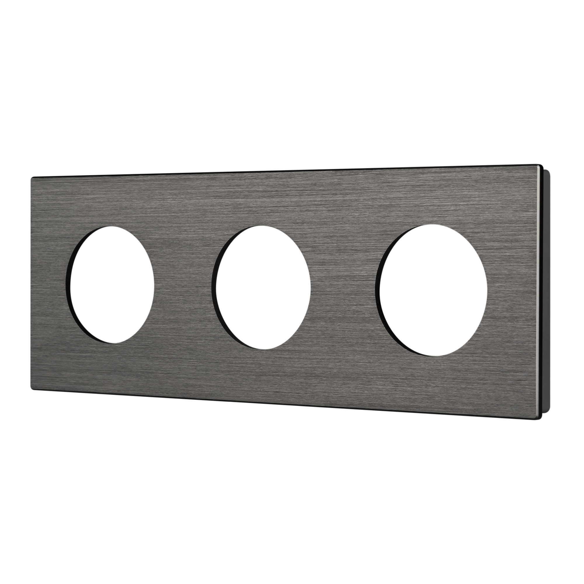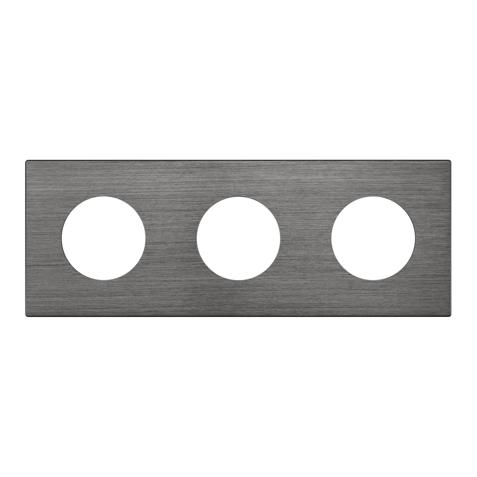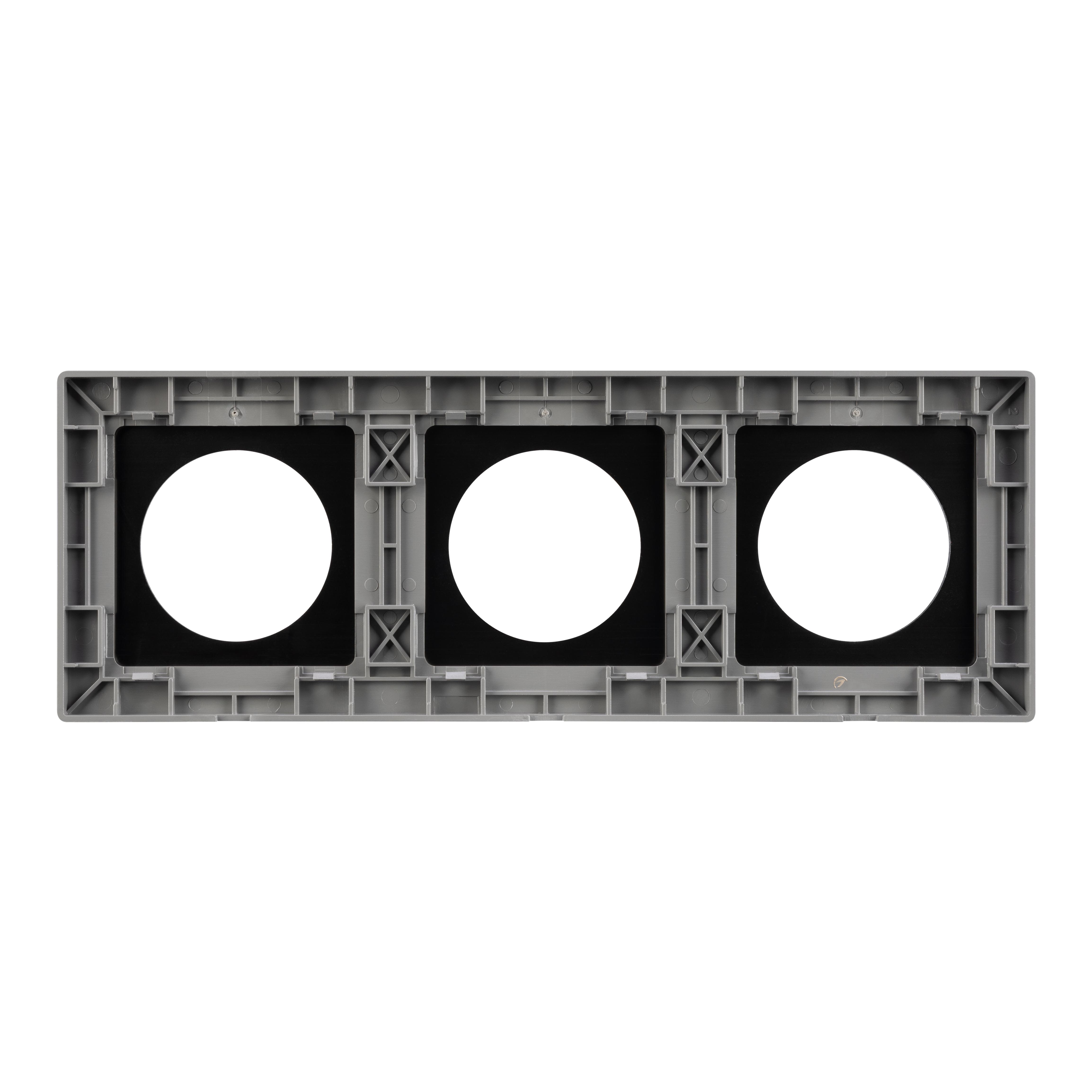 Рамка алюминиевая на 3 поста, под встраиваемый механизм. Вырез под функциональную часть - круг. Цвет - серый. Ориентации монтажа - горизонтальная и вертикальная. Габаритные размеры: длина 224 мм, ширина 82 мм, высота 10 мм. Гарантийный срок 12 мес. Рамка совместима только с механизмами арт. 043739/043740/043741