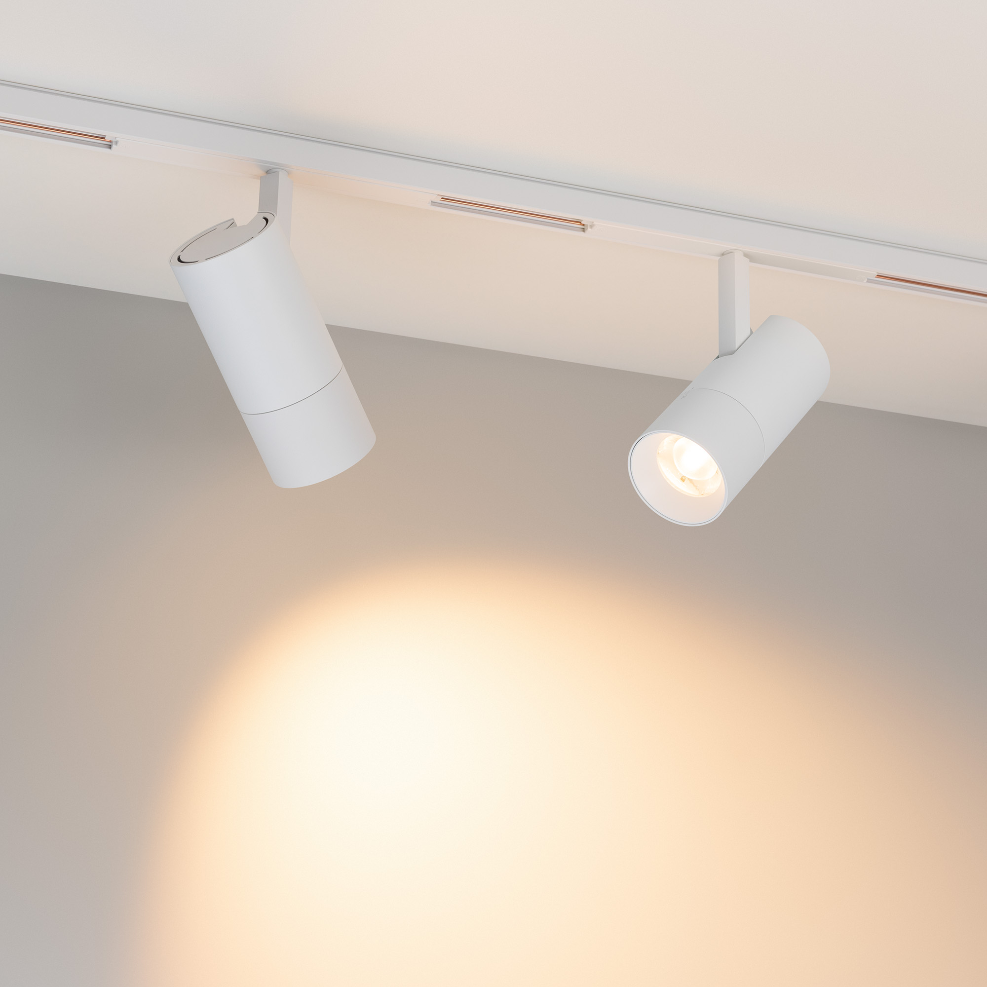 Светильник для магнитных треков MAG-ORIENT шириной 26 мм. Мощность 15 Вт, св. поток 1100 лм, 85 лм/Вт, теплый 3000 K, CRI>90, угол 34-60°, напряжение питания 48 В. Белый фигурный корпус из металл, экран поликарбонат, степень защиты IP20. Размеры LxWxH 204×66×211 мм. Длина светоизлучающего модуля 145мм. Монтаж на трек MAG-ORIENT. Изменяемый угол светового потока, шаг регулировки 1 градус.