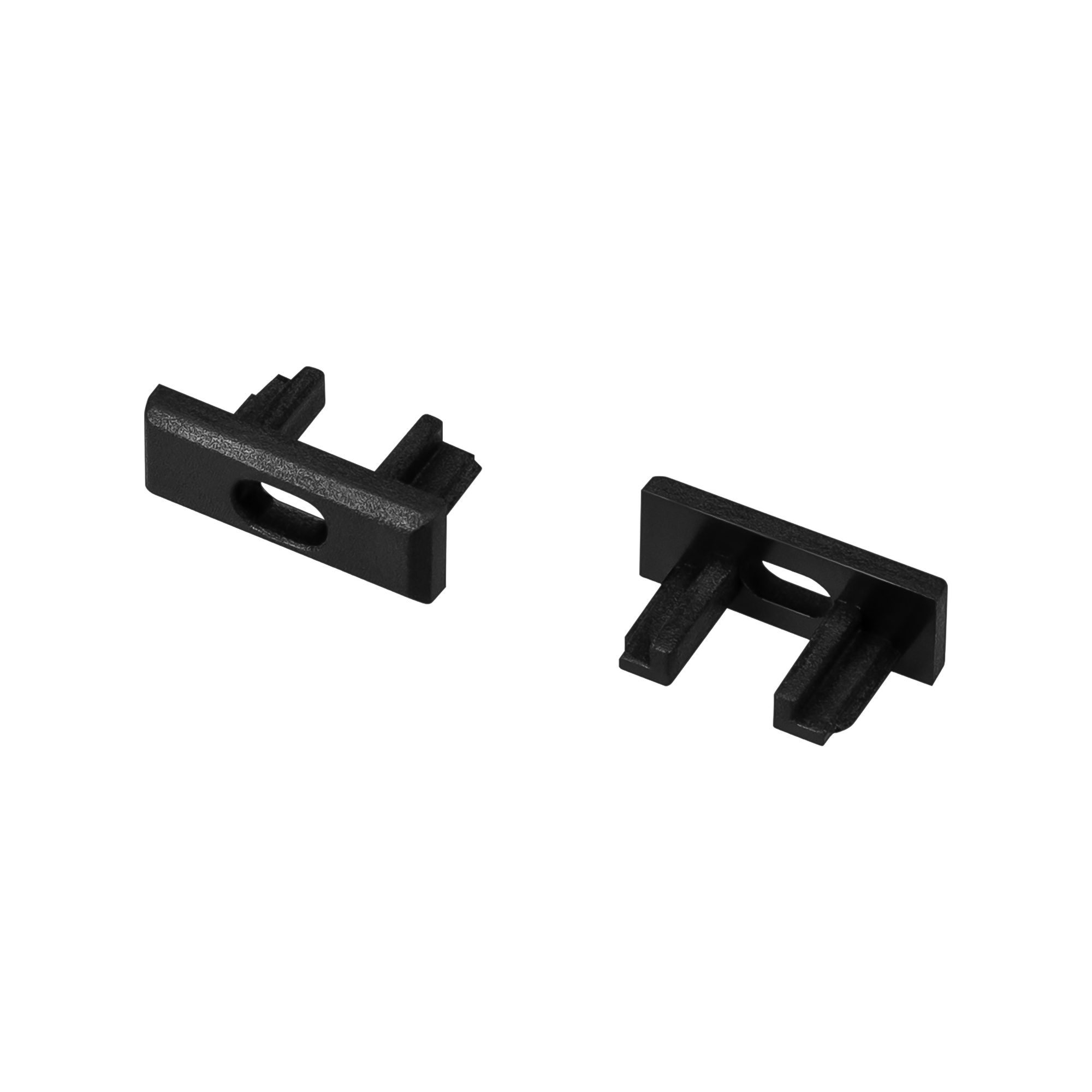Черные заглушки с отверстием (комплект 2 шт.) для профиля MIC-M. Придают законченный вид светильнику, а также защищают светодиодную ленту от внешних факторов (грязи, пыли и прочего). Отверстие в заглушке позволяет вывести кабель питания светодиодной ленты.