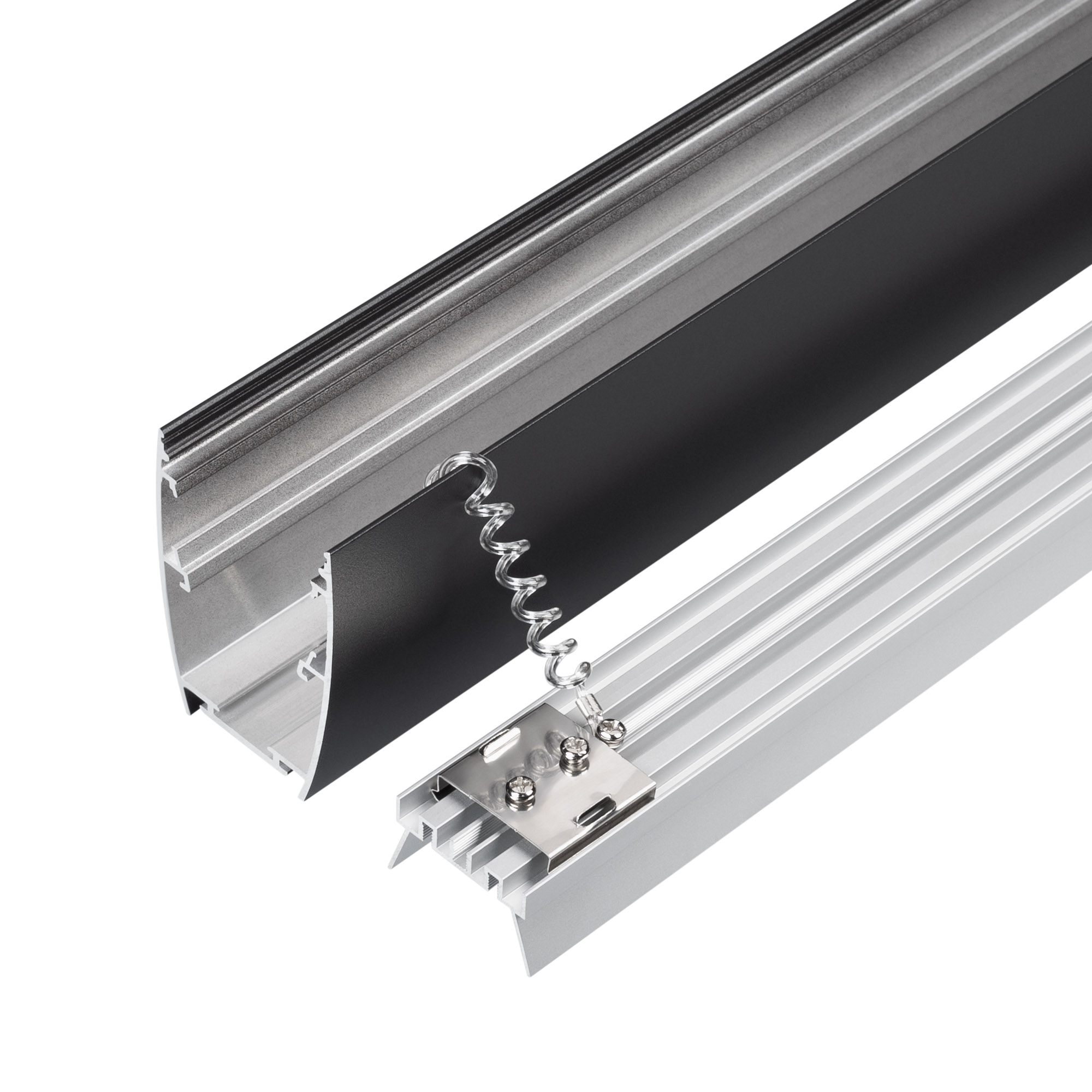 Подвесной/накладной профиль черного цвета из алюминия для основного освещения и контурной подсветки. Возможность установки антибликовой решетки Honeycomb поверх экрана позволяет получить более комфортное для глаз освещение.