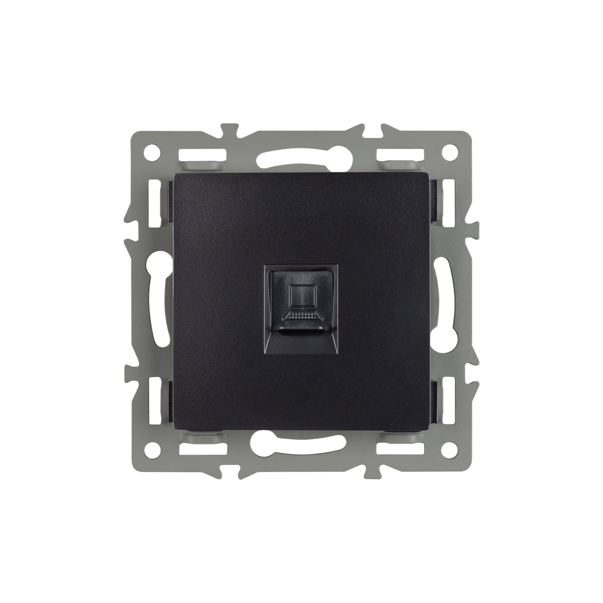 Механизм компьютерной розетки на 1 пост 6-й категории (CAT6), с суппортом из алюминия. Цвет - черный. Степень пылевлагозащиты - IP20.