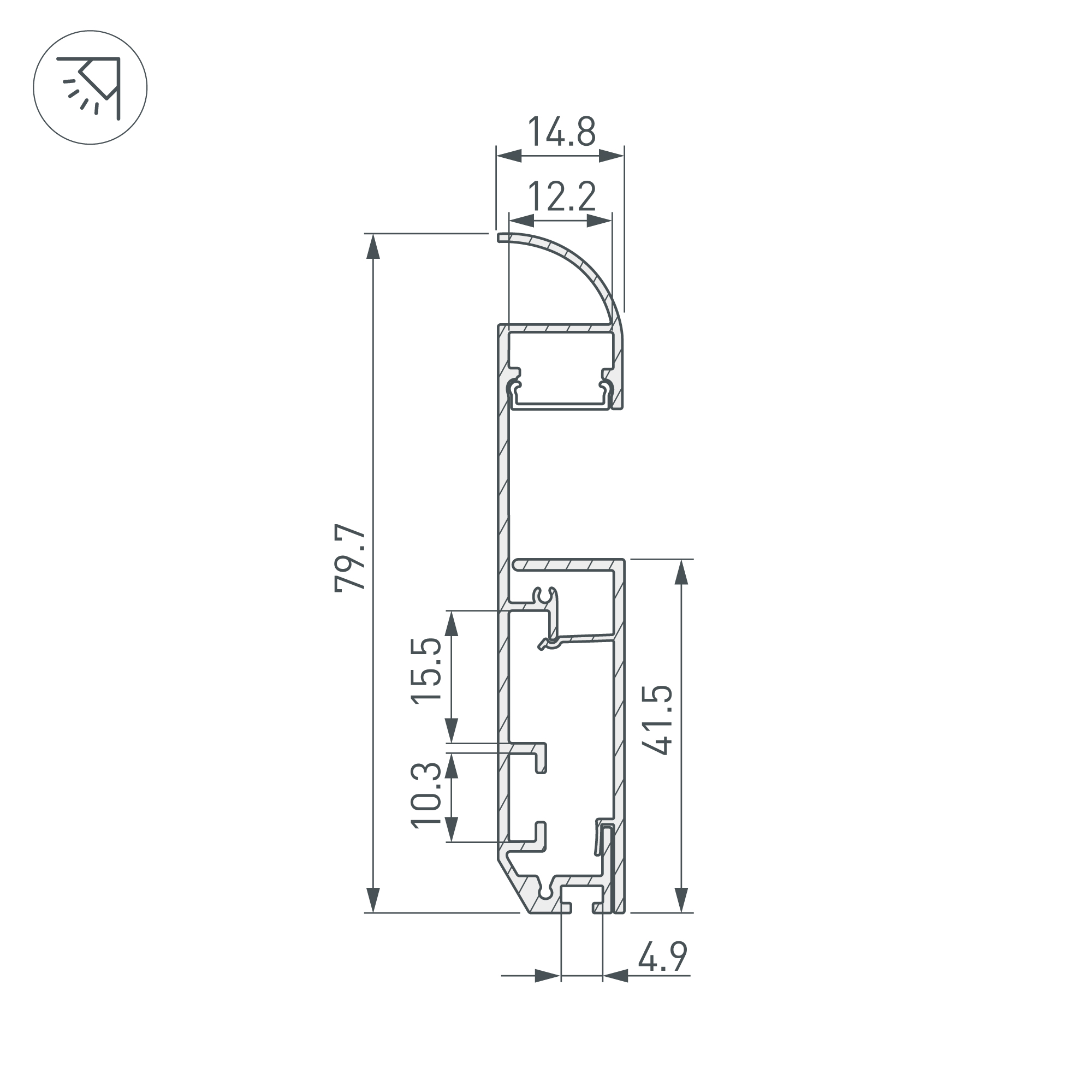 Накладной двухкомпонентный алюминиевый профиль-плинтус с кабель-каналом белого цвета для контурной подсветки помещения. Габаритные размеры профиля составляют 2000 мм в длину, 14,8 мм в ширину и 79,7 мм в высоту. Площадка для установки светодиодных лент позволяет использовать ленту шириной до 8 мм и мощностью до 20 Вт/м. Это обеспечивает гибкость в выборе светодиодных лент и создает потрясающие световые решения.