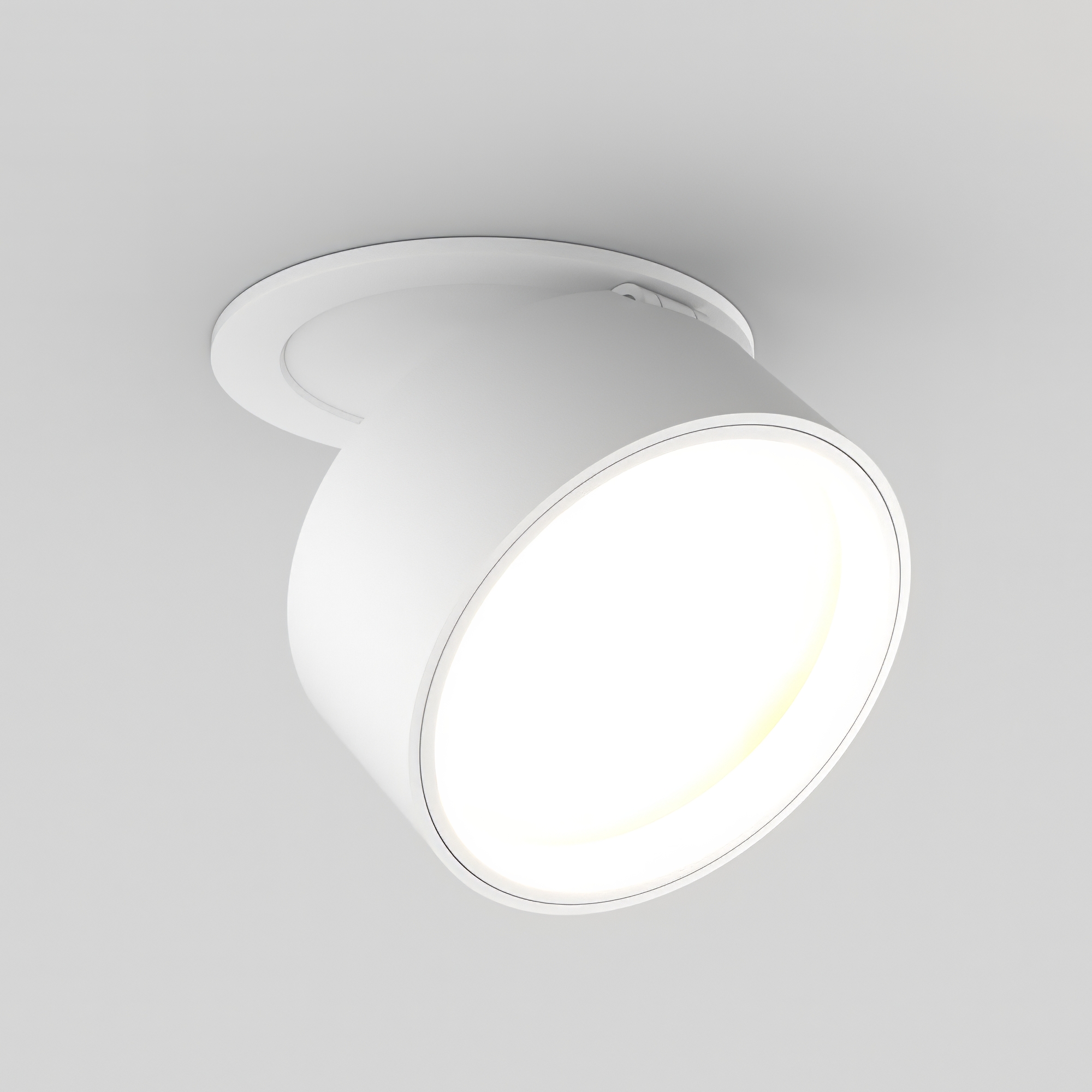 Встраиваемый поворотный откидной светильник для потолка. Мощность 12 Вт, св. поток 780 лм, 65 лм/Вт, теплый 3000 K, CRI>90, угол 100°, напряжение питания 230 В. Угол поворота 355°, угол наклона 90°. Белый круглый корпус из алюминия, экран PC, степень защиты IP44. Размер: диаметр 85 мм, высота 38 мм. Монтаж встраиваемый, установочное отверстие: диаметр 75 мм, глубина 20 мм. Драйвер 24-42 В, 300 мА, пульсация <5%.