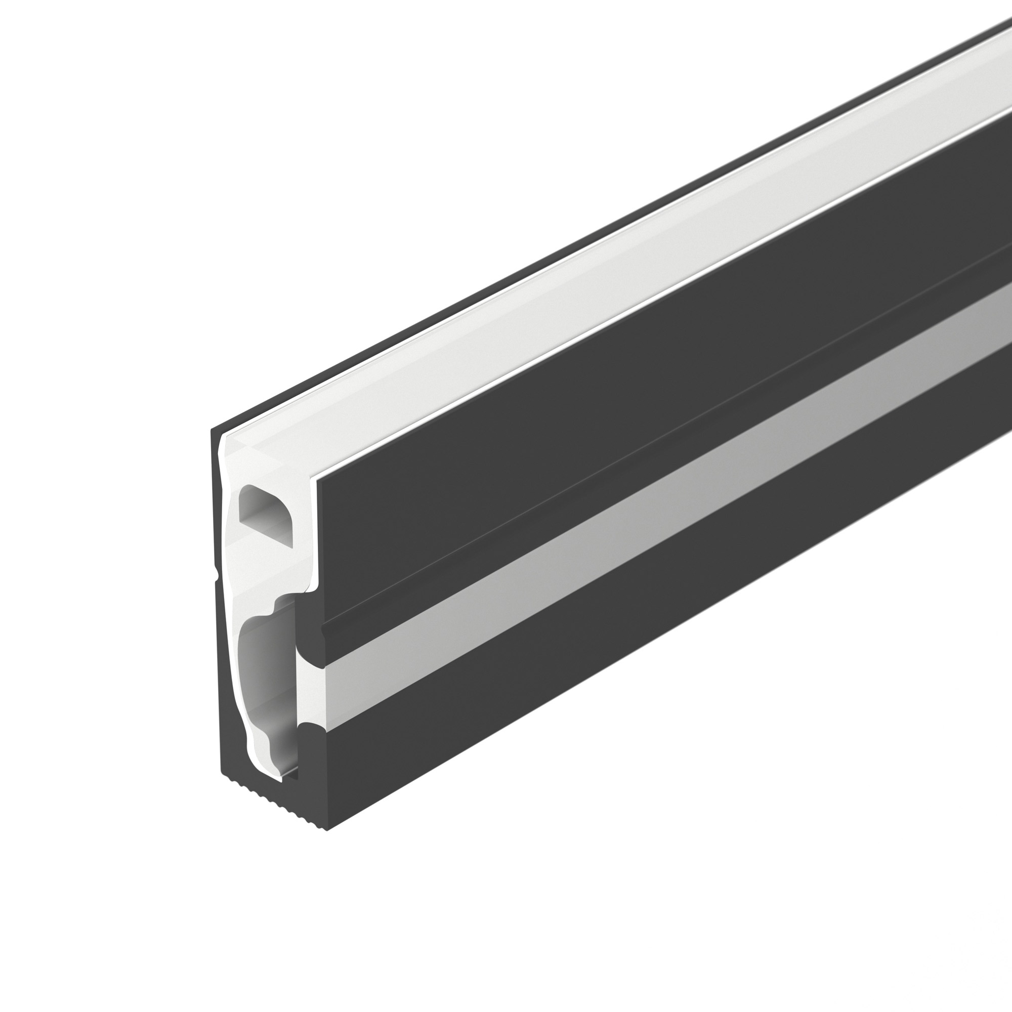 Цельнолитой силиконовый гибкий профиль с УФ-защитой, верхняя часть - белая матовая, стороны - черные матовые. Габаритные размеры профиля составляют 5000 мм в длину, 6 мм в ширину и 16 мм в высоту. Горизонтальный изгиб SIDE, минимальный радиус изгиба 30 мм. Угол излучения 150°. Для удобства установки ленты по всей длине профиля протянута нить. Площадка для установки светодиодных лент позволяет использовать ленту шириной от 6 до 8 мм, высотой до 2,9 мм и мощностью до 10 Вт/м. Для установки во влажных помещениях необходима герметизация при помощи двухкомпонентного эпоксидного герметика. Класс пылевлагозащиты – IP65 (при соблюдении технологии герметизации). Этот продукт представляет отличное решение для создания современных световых проектов и обеспечивает надежную и стильную основу для установки светодиодов.