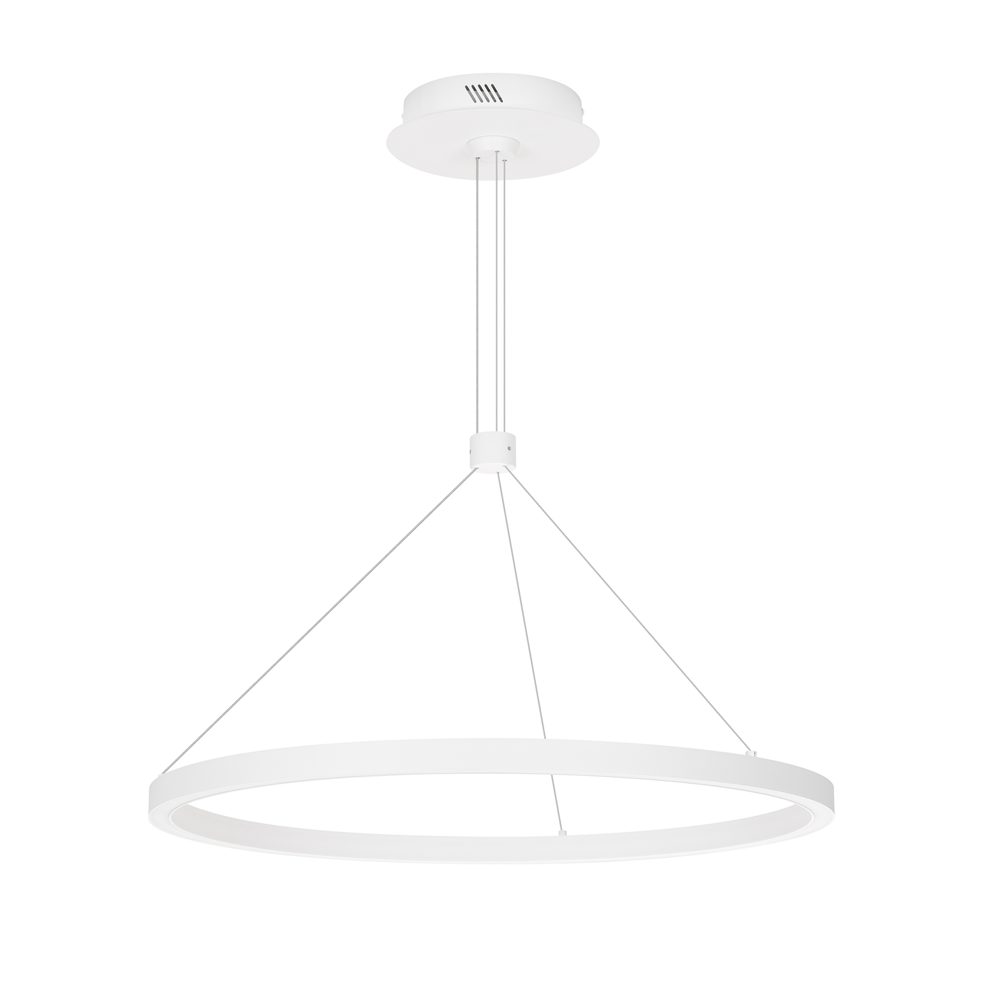 Подвесной светильник. Мощность 36 Вт, св. поток 2050 лм, 57 лм/Вт, дневной 4000 K, CRI>90, угол 120°, напряжение питания 230 В. Белый круглый корпус из алюминия, экран силикон, степень защиты IP20. Размер: диаметр 600 мм, высота 25 мм, ширина профиля 25 мм, размер чаши: диаметр 170 мм, высота 40 мм. Монтаж подвесной, длина подвеса 1200мм. Драйвер 33-40 В, 900 мА. Пульсация <5%.