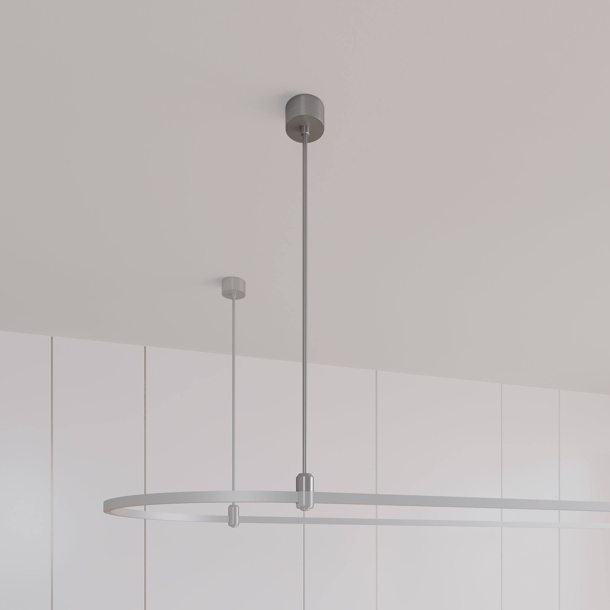 Подвес жесткий используется для крепления треков системы APRIORI к потолку или другой поверхности и подвода питания DC48V к системе. Подвес имеет тип крепления A. Изготавливается из алюминия, гальванизированного в цвет титан. Диаметр чаши 80 мм, внутренний диаметр чаши 74мм, внешняя высота чаши 38 мм, глубина чаши до монтажного отверстия 25 мм, общая высота подвеса 165 мм.