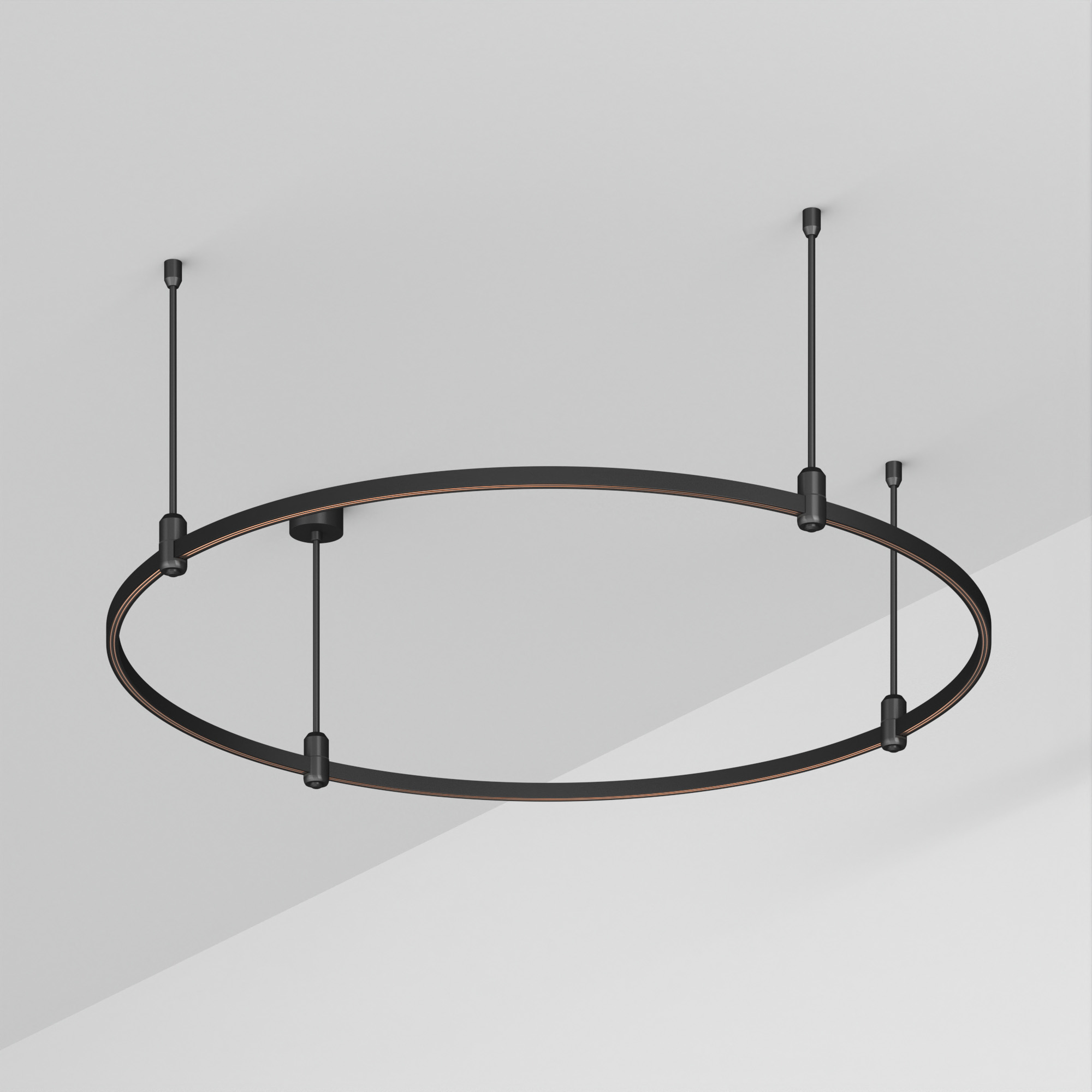 Подвесная конструкция APRIORI, форма круг. В комплекте треки с аксессуарами и жесткими подвесами длиной 400мм Размер: диаметр 1200мм, высота 22мм. Монтируется подвесным способом. Шинопровод рассчитан на работу с безопасным напряжением DC48В. Изготавливается из алюминия, цвет черный Светильники и источники питания приобретаются отдельно.