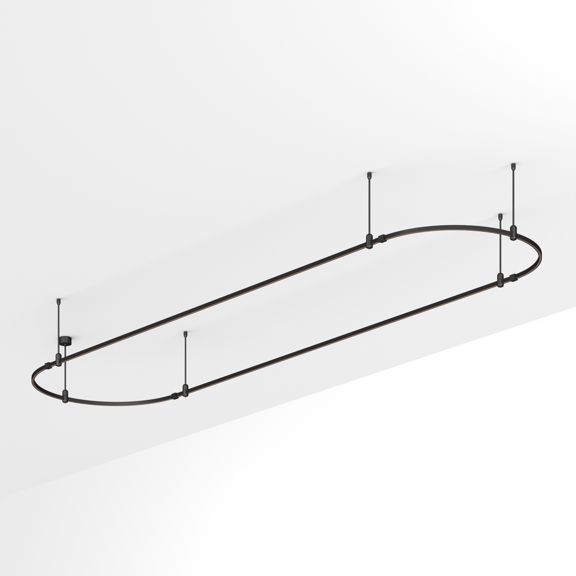 Подвесная конструкция APRIORI, форма овал. В комплекте треки с аксессуарами и жесткими подвесами длиной 400мм. DC48V. Материал алюминий, цвет черный. Размер ДxШxВ: 4000x1000x22мм. Светильники и источники питания приобретаются отдельно.