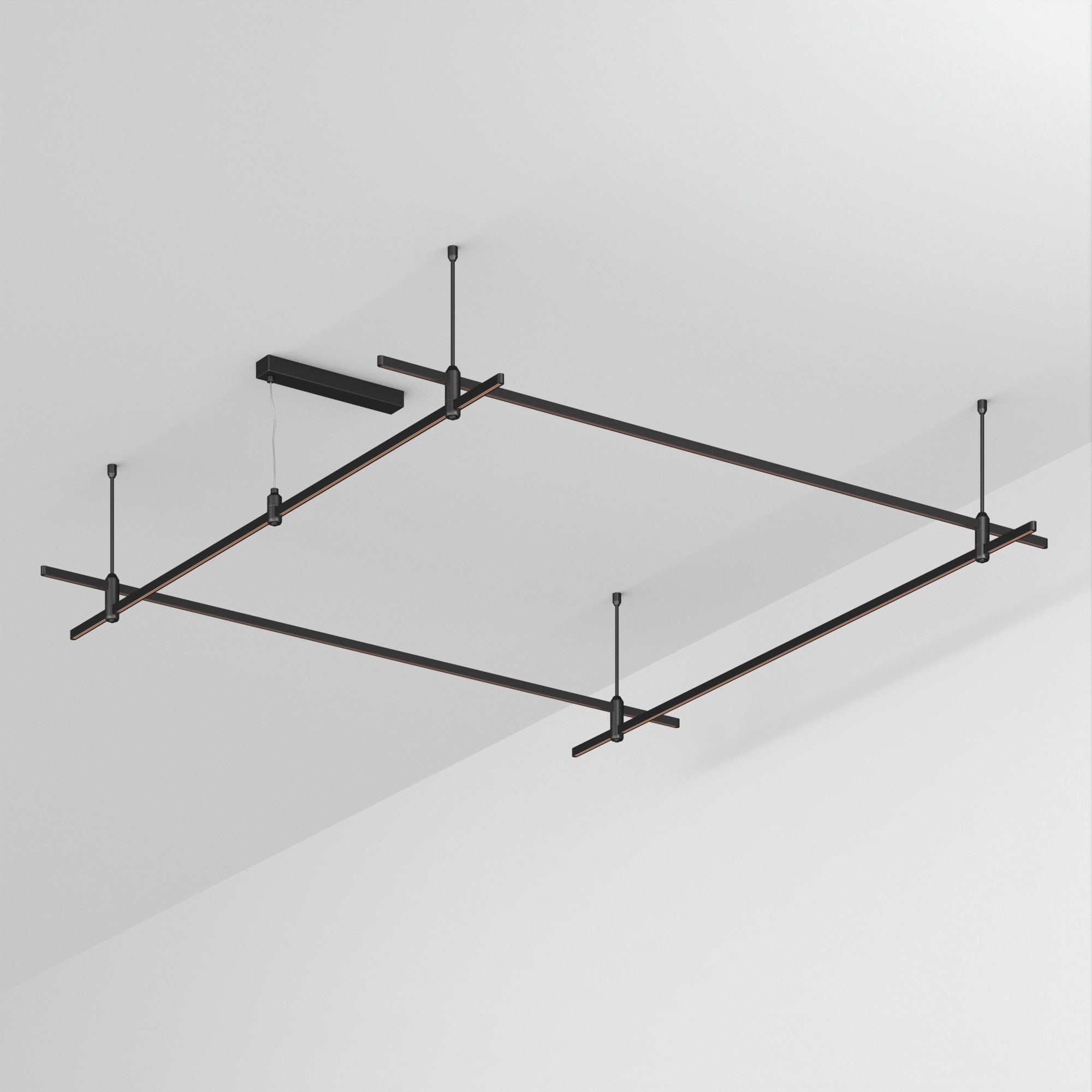 Подвесная конструкция APRIORI, форма квадрат. В комплекте треки с аксессуарами и жесткими подвесами длиной 400мм. DC48V. Материал алюминий, цвет черный. Размер ДxШxВ: 2000x2000x22мм. Светильники и источники питания приобретаются отдельно.