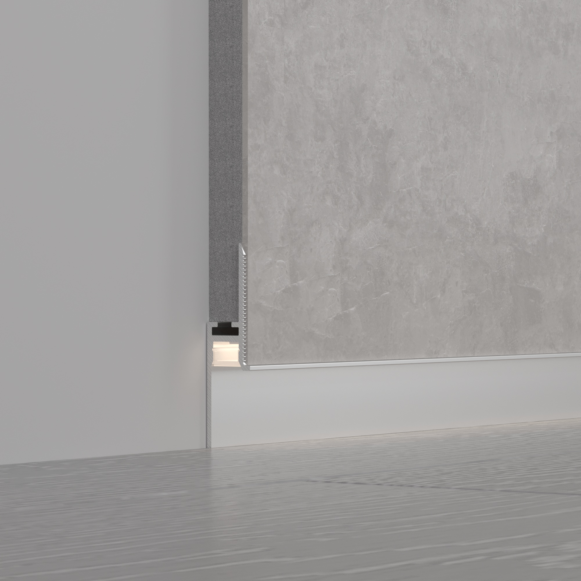 Встраиваемый профиль из анодированного алюминия для светодиодных лент и линеек под строительную отделку для создания эффекта парящей стены. Не является плинтусом, используется как декоративная накладка на фальш-стены. Габаритные размеры профиля составляют 2000 мм в длину, 13,2 мм в ширину и 51,9 мм в высоту. Площадка для установки светодиодных лент позволяет использовать ленту шириной до 8 мм и мощностью до 22 Вт/м. Это обеспечивает гибкость в выборе светодиодных лент и создает потрясающие световые решения. Экран, заглушки и другие аксессуары не включены в комплект и приобретаются отдельно. Для данной модели профиля представлено два вида экрана: силиконовый экран W10-5000 SILICONE 043661 (совместим с заглушками PLINTUS-FANTOM-BENT 043898 и 043664) и пластиковый экран W10-2000 OPAL 043606 (совместим с заглушками PLINTUS-FANTOM 043607 и 043906). Цена указана за 1 метр профиля. Отличное решение для создания современных световых проектов.