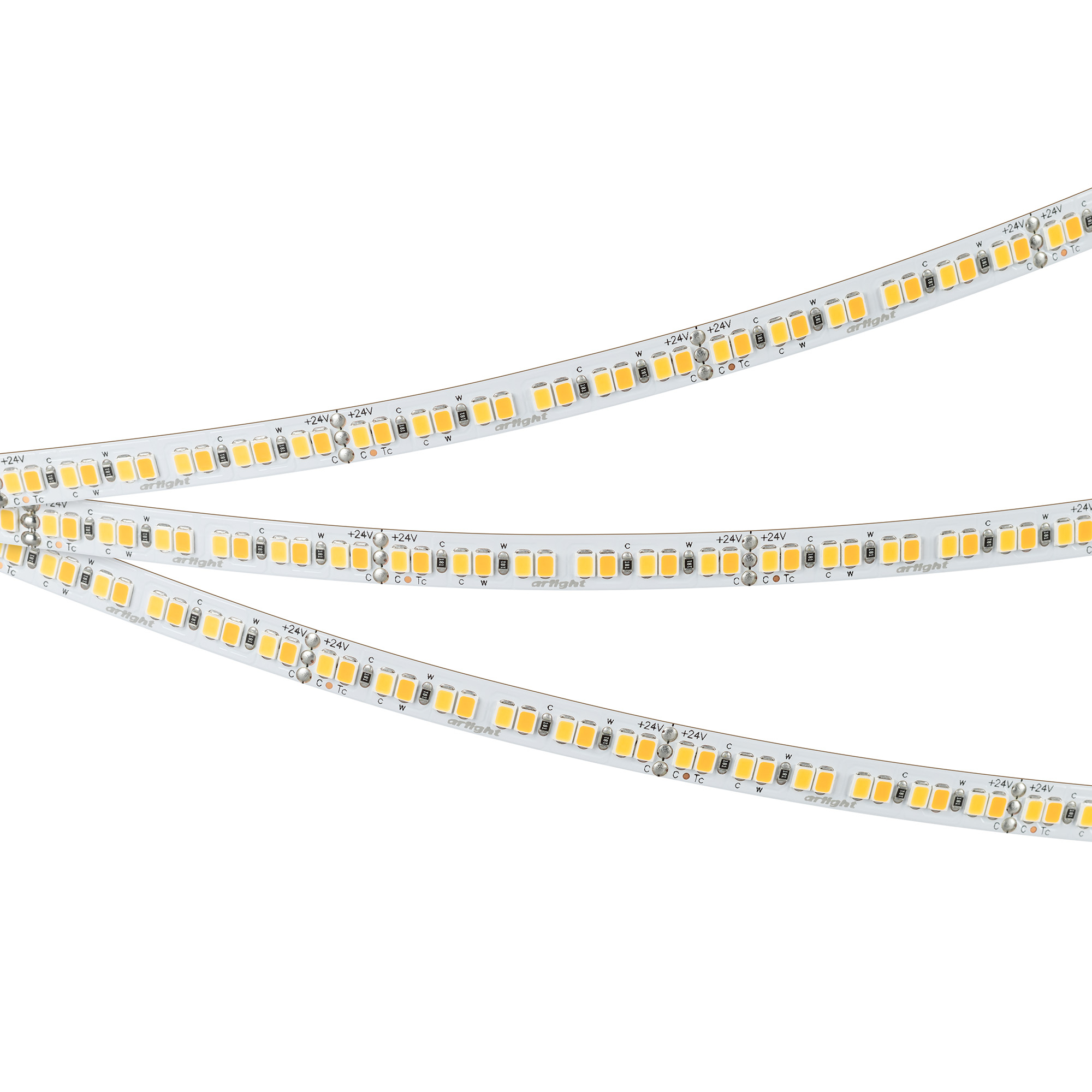 Светодиодная лента RT серии A240, шириной 8 мм, мощностью 20 Вт/м, с изменяемым цветом свечения (MIX) в диапазоне от дневного (4000K) до теплого (2400K). Напряжение питания 24 В. Светодиоды SMD 2835, 240 шт/м. Высокий индекс цветопередачи CRI>95, обеспечивающий точное восприятие цветов при освещении любых жилых и коммерческих помещений. Минимальный отрезок 50 мм (12 светодиодов). Двухканальная лента с тремя проводами для подключения, управляется MIX-контроллером. Применяется для создания биодинамического освещения, декоративной подсветки элементов интерьера, мебели. Обязательна установка на профиль.