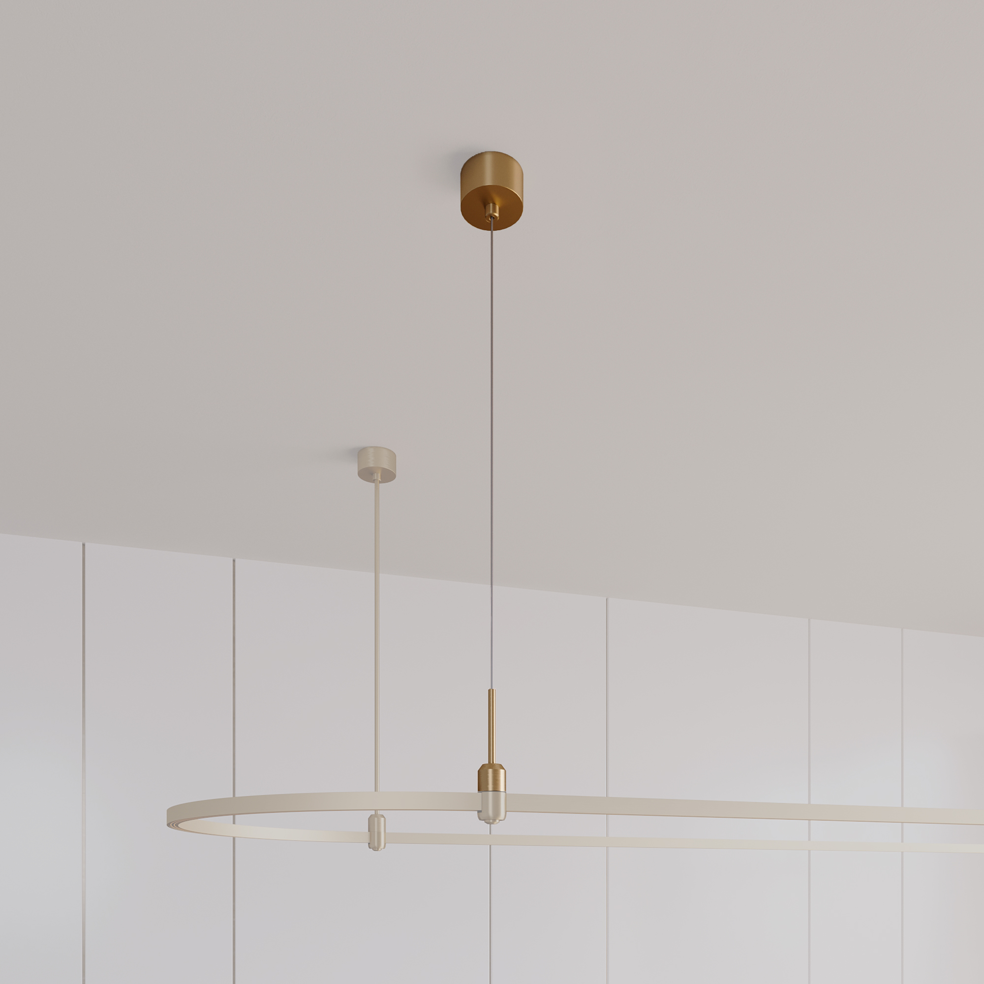 Подвес используется для крепления треков системы APRIORI к потолку или другой поверхности и подвода питания DC48V к системе. Подвес имеет тип крепления A и выдерживает вес до 20 кг. Изготавливается из алюминия, гальванизированного в цвет светлое золото. Диаметр чаши 80 мм, внутренний диаметр чаши 74мм, внешняя высота чаши 38 мм, глубина чаши до монтажного отверстия 25 мм, общая высота подвеса 5000 мм.