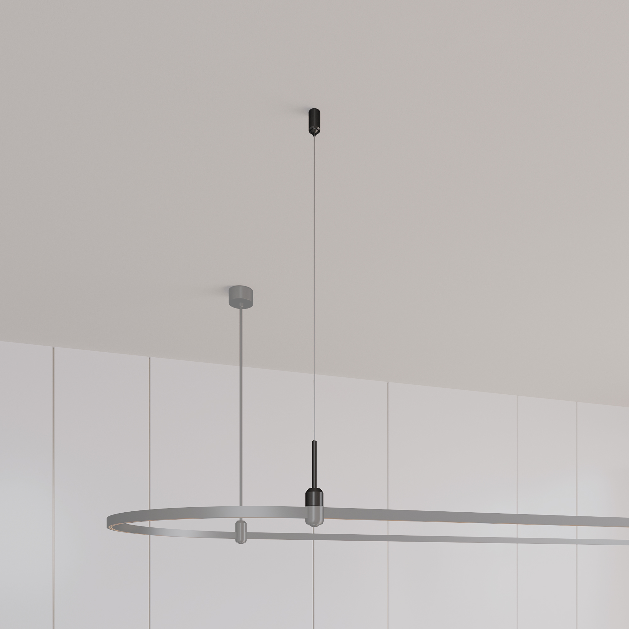Подвес гибкий HANG-A с регулируемым тросом длиной 5000 мм используется для подвесного монтажа треков системы APRIORI к потолку или другой поверхности. Размер: Ø20 х 5000 х Ø38 мм. Подвес имеет тип нижнего крепления A. Совместим с держателями трека тип А. Не проводит электричество. Изготавливается из алюминия, окрашенного в черный цвет.